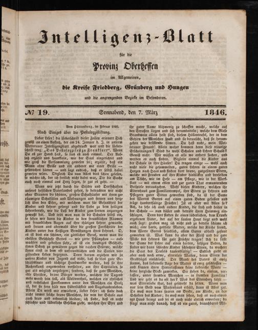 eweſen wäre. Obgleich Du nun Alles dies ſchon geleſen, 0 möchte ich, der ich freilich nicht dabei war, Dir die Sache auch noch einmal ans Herz legen, ſo gut es geht.— Wenn wir jetzt durch die Städte und Dorfſchaften unſeres heſſiſchen Vaterlandes gehen, ſo betrachten wir nicht ohne Staunen die ſchönen, großen Schulhäuſer mit ihren ge⸗ räumigen Schulſälen und Wohnungen und freuen uns herz⸗ lich über den Eifer, mit welchem man für Geſundheit der Kinder und Lehrer geſorgt und die Liebe zu dem heiligen Lehrerberufe, wie die Luſt der Kinder zum Lernen anzuregen gewußt hat. Und tritt man nun in die Schulen ſelbſt ein, ſo ſehen wir dann die Kinder in den freundlichen Räumen mit freundlichen Augen auf ihre thätigen Lehrer gewandt, und freuen uns abermals über die großen Fortſchritte der Kinder unter den fleißigen Bemuhungen ihres Lehrers. O, es iſt dies ein ſchöner, ein göttlicher Beruf, wenn man die edelſten Geſchöpfe Gottes— wie zarte Pflänzchen— auf— wachſen und gedeihen ſieht, es iſt ein freudiges Geſchäft, ihnen Schutz zu gewähren gegen die rauhen Stürme, welche ihnen einſt in dem oft unfreundlichen und die Seelen ver— giftenden Leben begegnen. Denn darum erziehen wir ja unſere Kinder von Jugend auf nicht, daß ſie blos gute Ge— ſchäftsleute und tüchtige Handwerker werden, daß ſie ihre Rechenkunſt anzuwenden verſtehen, um ihre Capitalien ſo gut als möglich anzulegen; ſondern, daß ſie gute Menſchen, edle Chriſten, brave Bürger werden, welchen die Tugend mehr werth ſein ſoll, als Weltvortheil, welchen ein ehrliches und rechtliches Fortkommen unter den Menſchen ein Stolz iſt, der ſie fern hält von Lüderlichkeit und Vagabundenleben. Allein Du wirſt mir erwiedern, lieber Leſer: ich finde doch nicht immer ſolche brave Menſchen, die von der Schule aus auch brav und ordentlich bleiben; ich finde, daß es recht ſchlechte und luͤderliche Geſellen giebt, welchen ihre Ehre und
