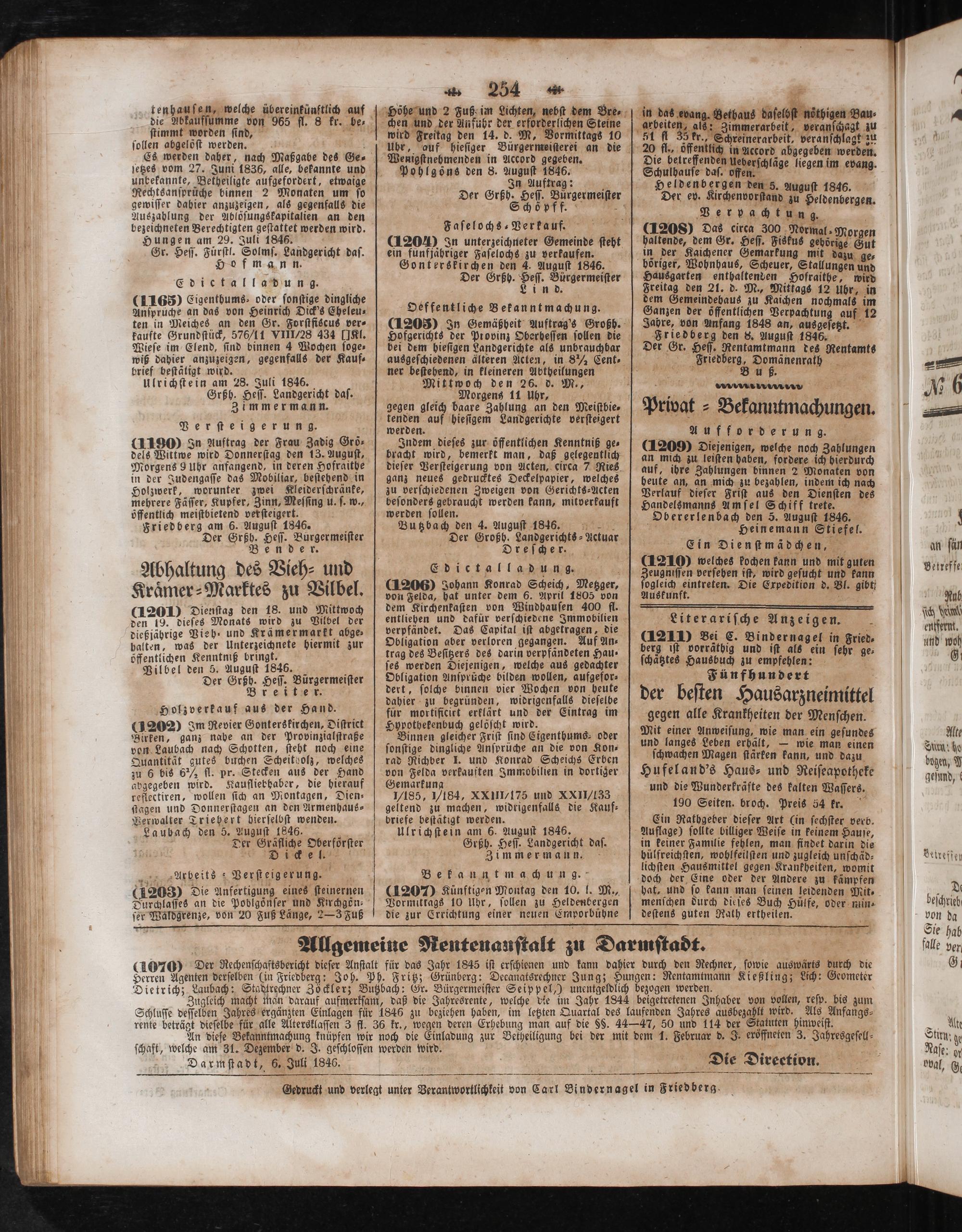 Gedruckt und verlegt unter Verantwortlichkeit von Carl Bindernagel in Friedberg.