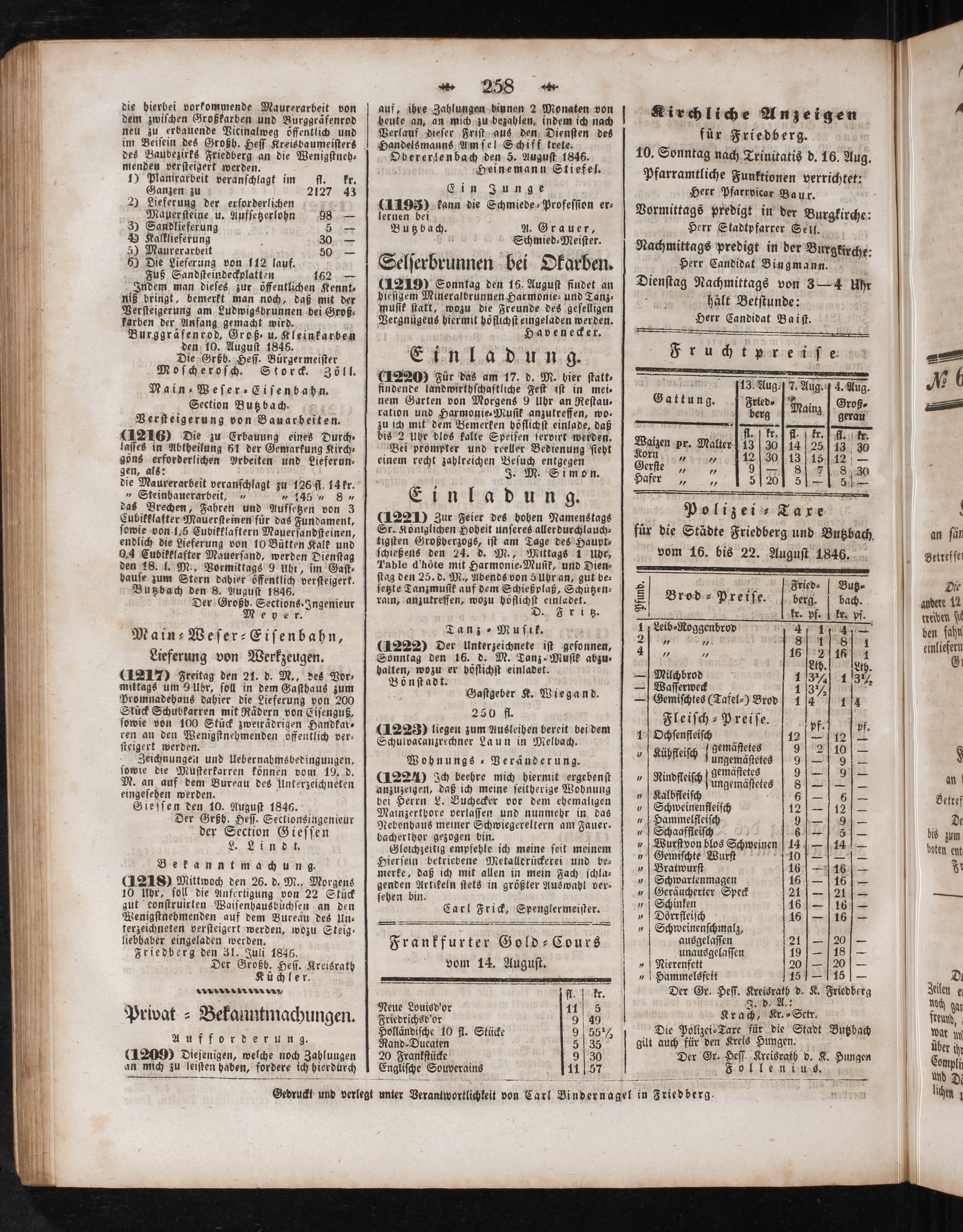 Gedruckt und verlegt unter Veranlwortlichkeit von Carl Bindernagel in Friedberg. e