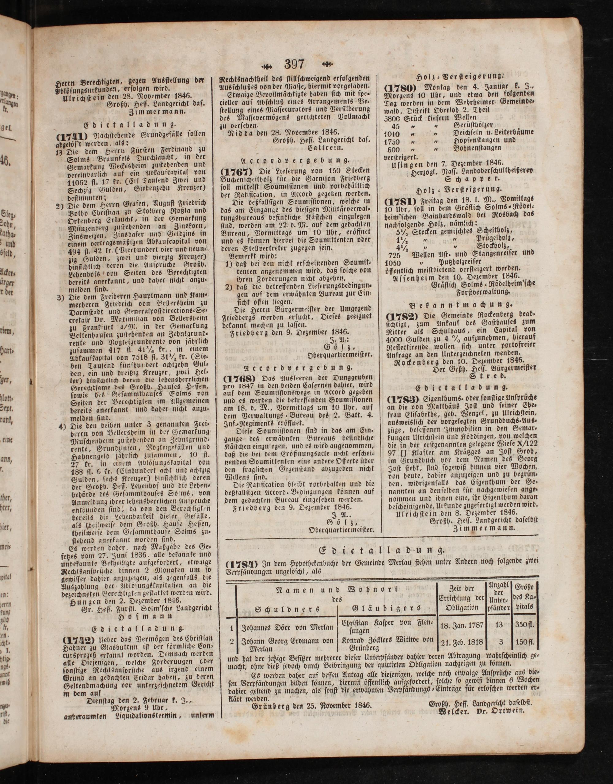 Nidda den 28. Novembee 1846. Großh. Heſſ. Landgericht daſ.