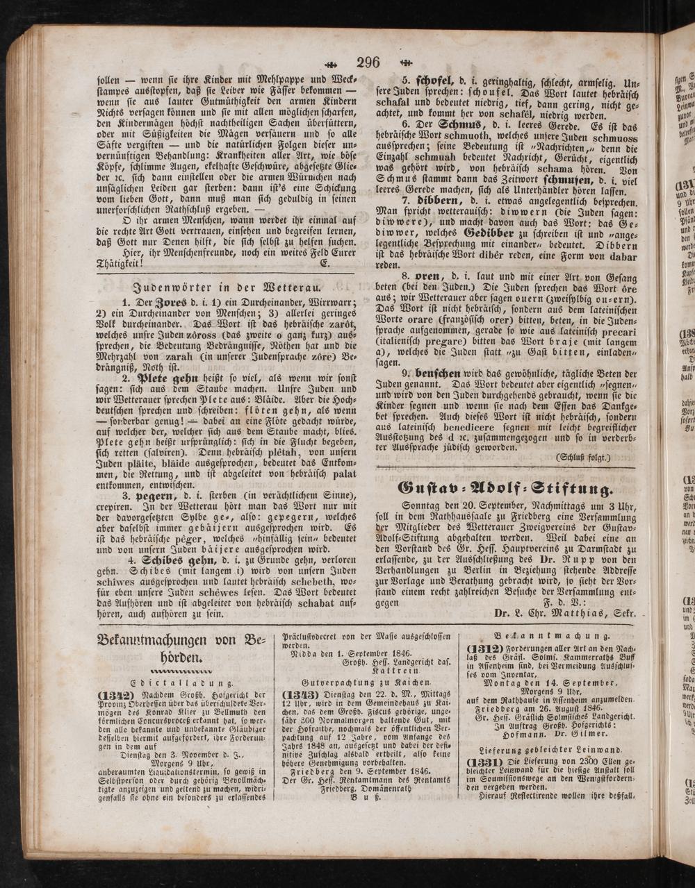 4. Schibes gehn, d. i. zu Grunde gehn, verloren gehn. Schibes(mit langem i) wird von unſern Juden schiwes ausgeſprochen und lautet hebräiſch schebeth, wo⸗ für eben unſere Juden schéwes leſen. Das Wort bedeutet das Aufhören und iſt abgeleitet von hebräiſch schabat auf⸗ hören, auch aufhören zu ſein.