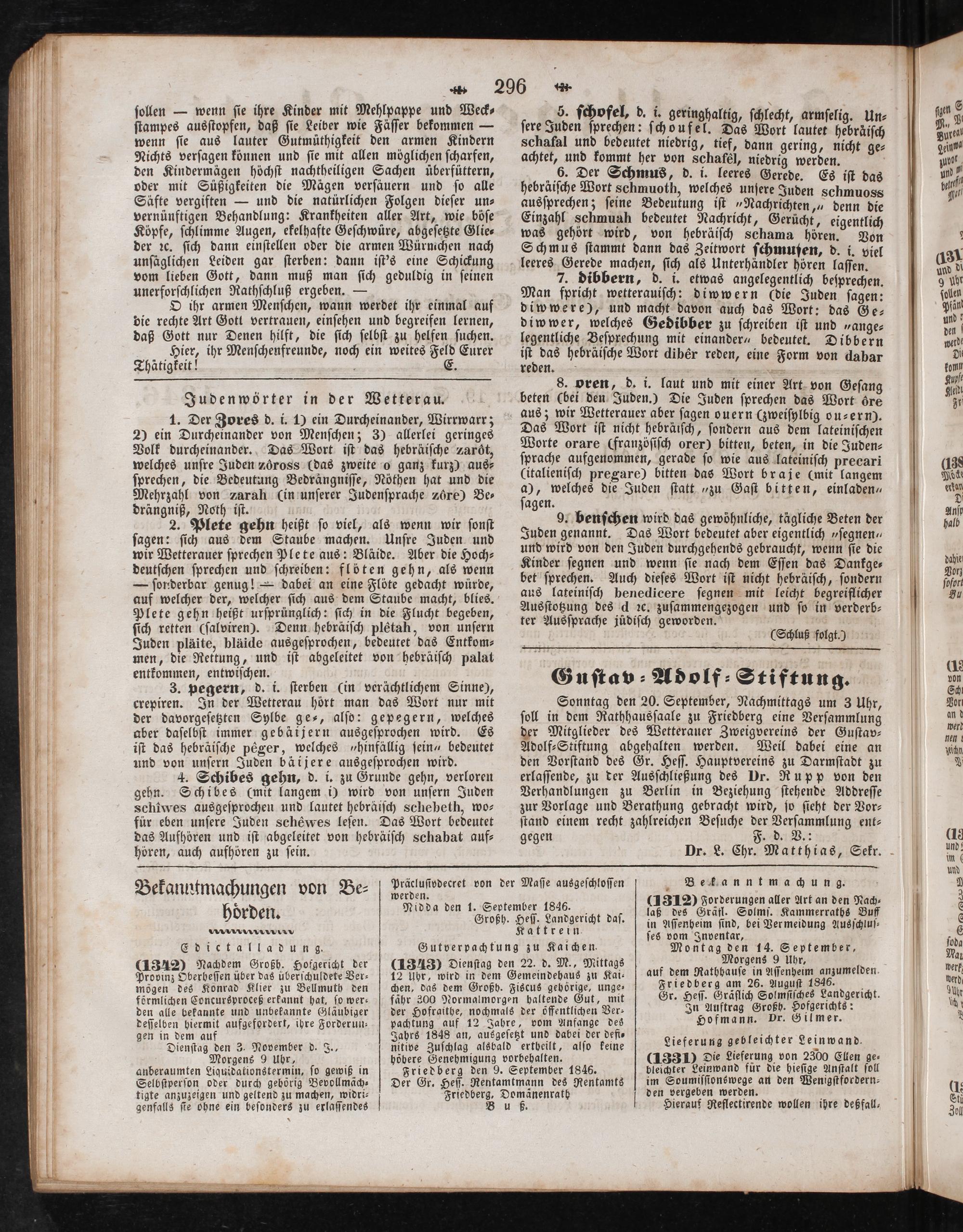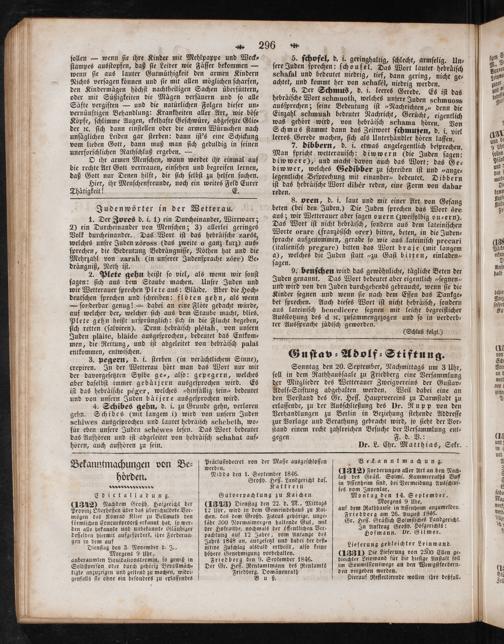 Sonntag den 20. September, Nachmittags um 3 Uhr, ſoll in dem Rathhausſaale zu Friedberg eine Verſammlung der Mitglieder des Wetterauer Zweigvereins der Guſtav— Adolf⸗Stiftung abgehalten werden. Weil dabei eine an den Vorſtand des Gr. Heſſ. Hauptvereins zu Darmſtadt zu erlaſſende, zu der Ausſchließung des Dr. Rupp von den Verhandlungen zu Berlin in Beziehung ſtehende Addreſſe zur Vorlage und Berathung gebracht wird, ſo ſieht der Vor⸗ ſtand einem recht zahlreichen Beſuche der Verſammlung ent⸗ gegen F d V