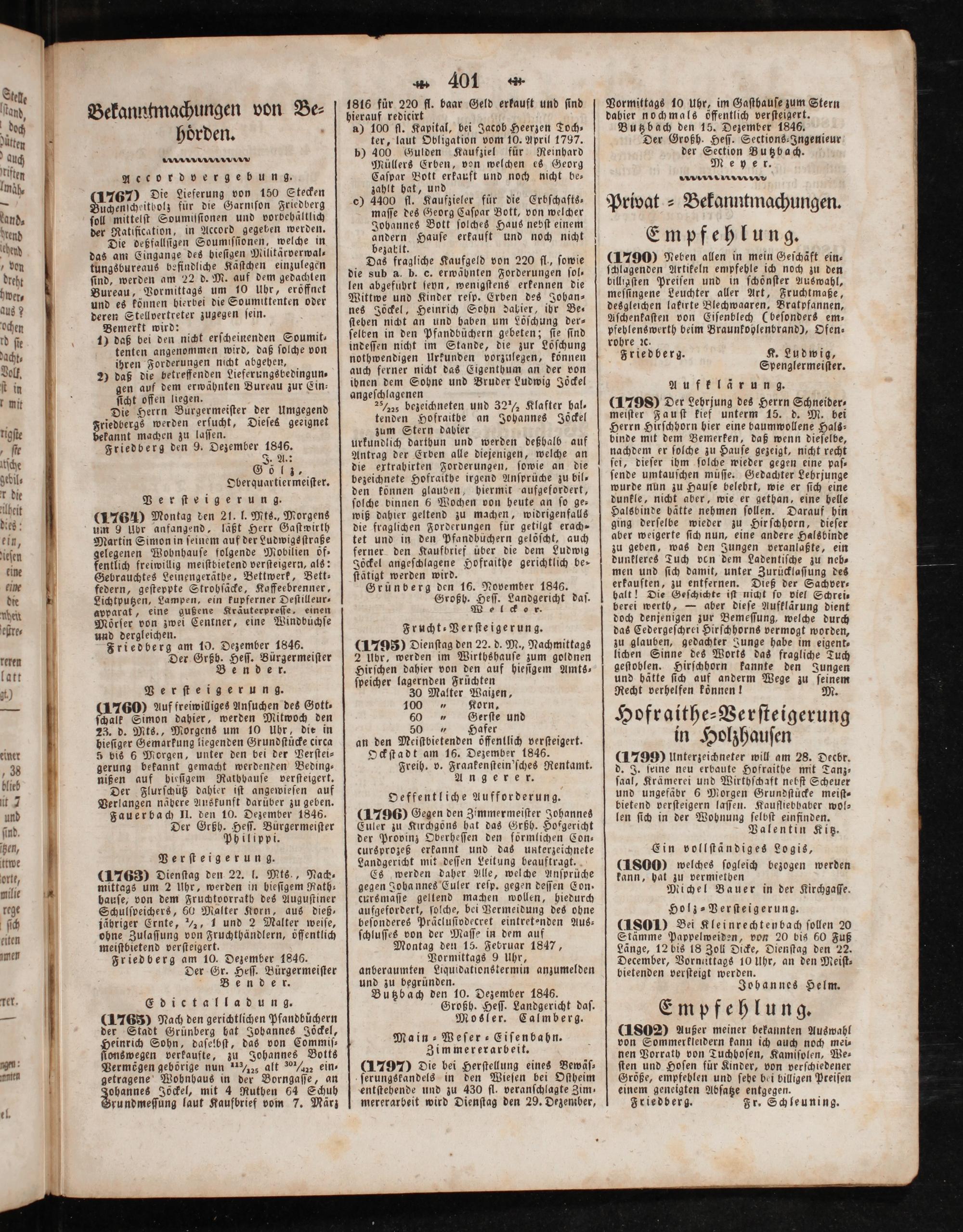 Friedberg den 9. Dezember 1846.
