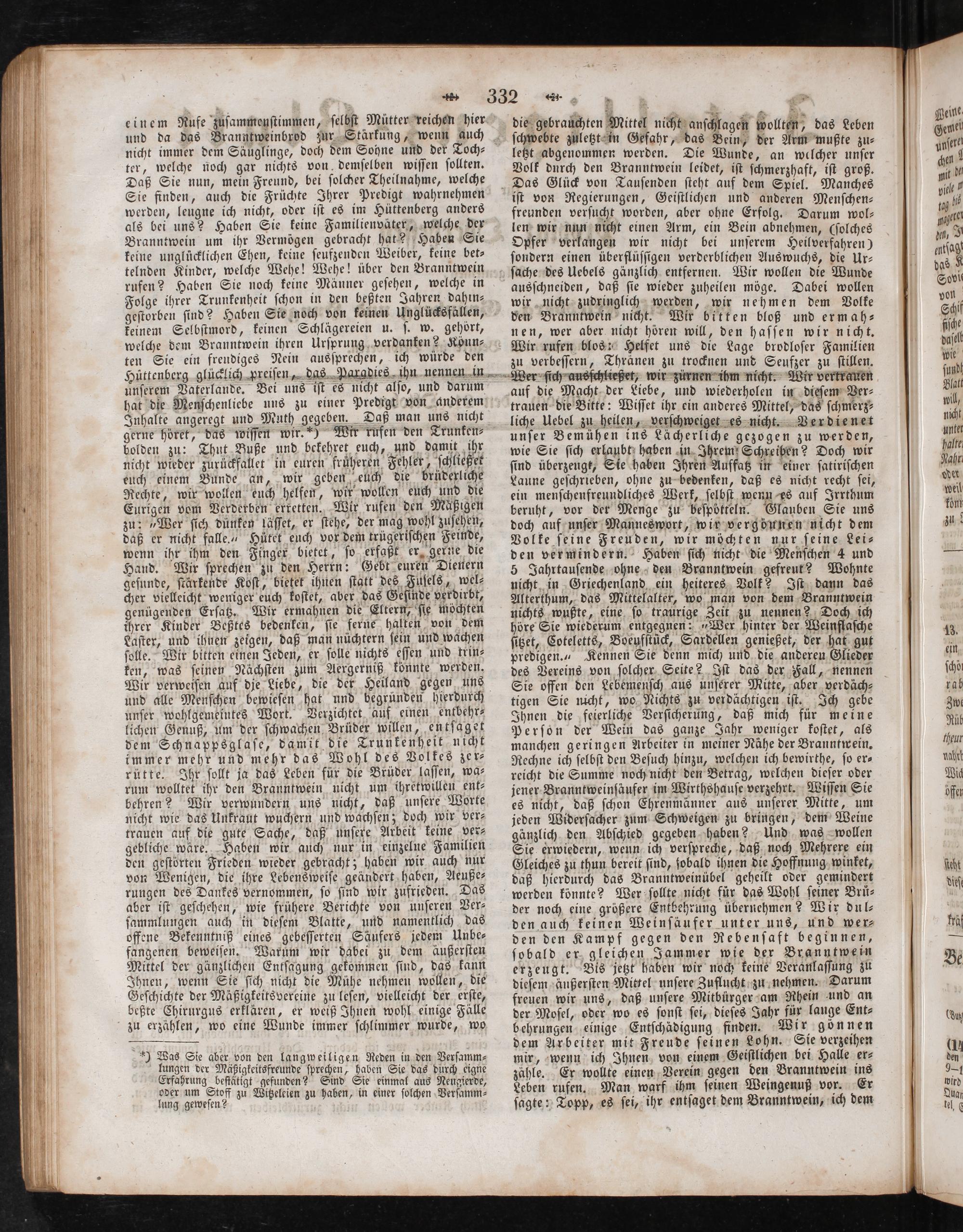 ) Was Sie aber von den langweiligen Reden in den Verſamm⸗ lungen der Mäßigkeitsfreunde ſprechen, haben Sie das durch eigne Erfahrung beſtätigt gefunden? Sind Sie einmal aus Neugierde, oder um Stoff zu Witzeleien zu haben, in einer ſolchen Verſamm⸗ lung geweſen?