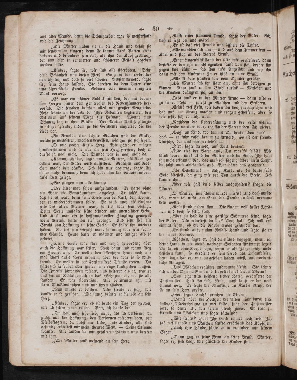 „Soll eigentlich heißen: lieber Karl; verbeſſerte der Forſtmeiſter, Halt ihn feſt, Kind, ſonſt lauft er dir noch einmal weg. Er legte die Glückliche an Karl's Bruſt, der ſie an ſein Herz preßte..