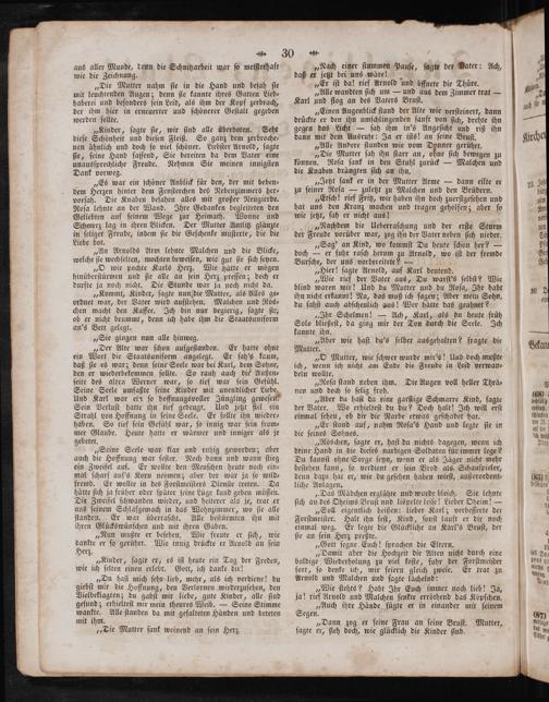 „Du haſt mich ſehr lieb, mehr, als ich verdiene! du giebſt mir die Hoffnung, den Verlornen wiederzuſehen, den Vielbeklagten; du gabſt mir liebe, gute Kinder, alle ſind geſund; erhielteſt mir mein theures Weib.— Seine Stimme wankte. Alle ſtanden da mit gefalteten Händen und beteten mit ihm. i 8