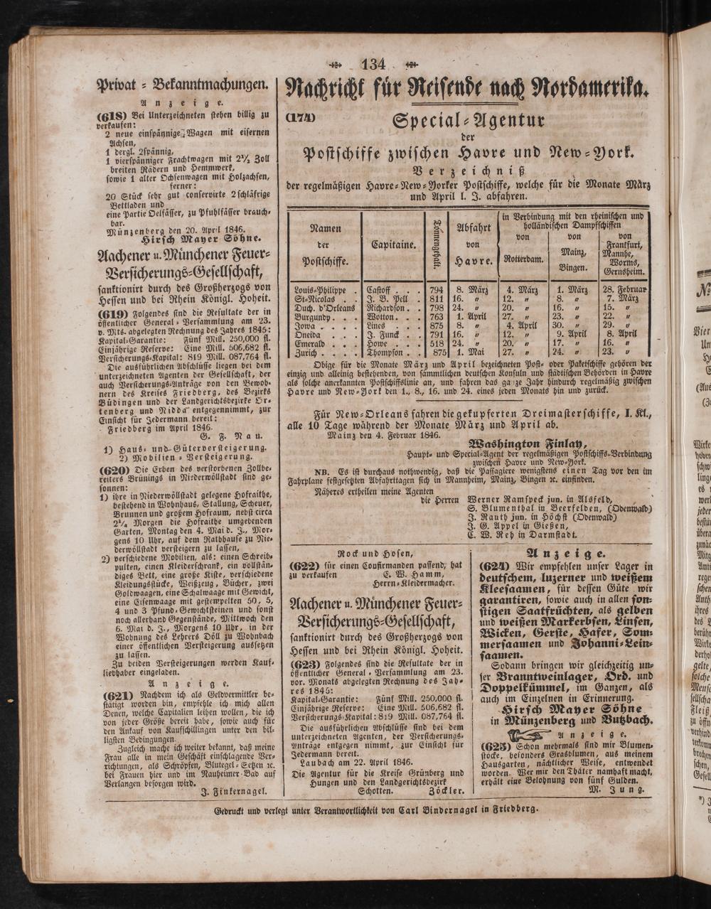Gedruckt und verlegt unter Verantwortlichkeit von Carl Bindernagel in Friedberg.