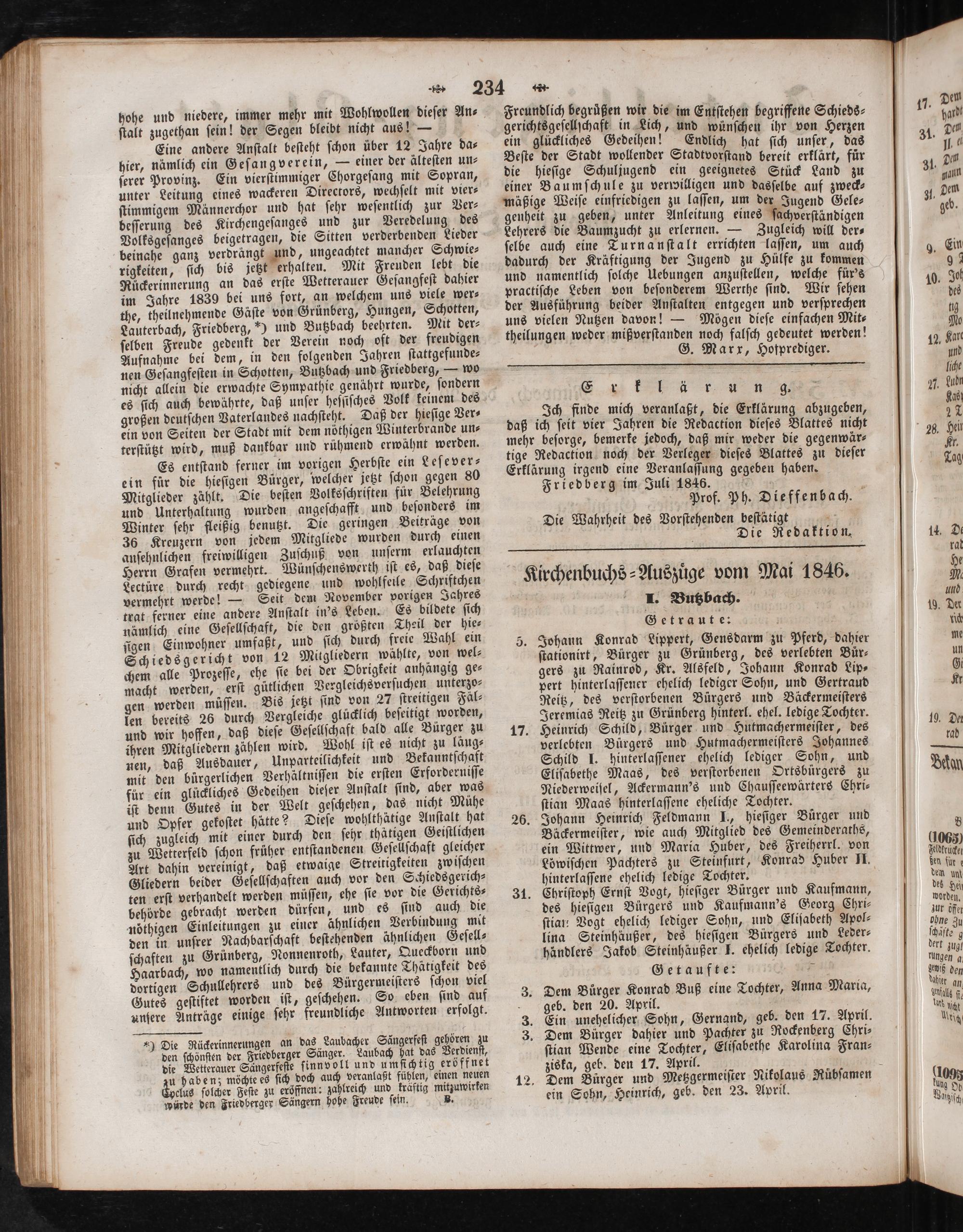 Kirchenbuchs-Auszuͤge vom Mai 1846. I. Butzbach. Getraut e: b