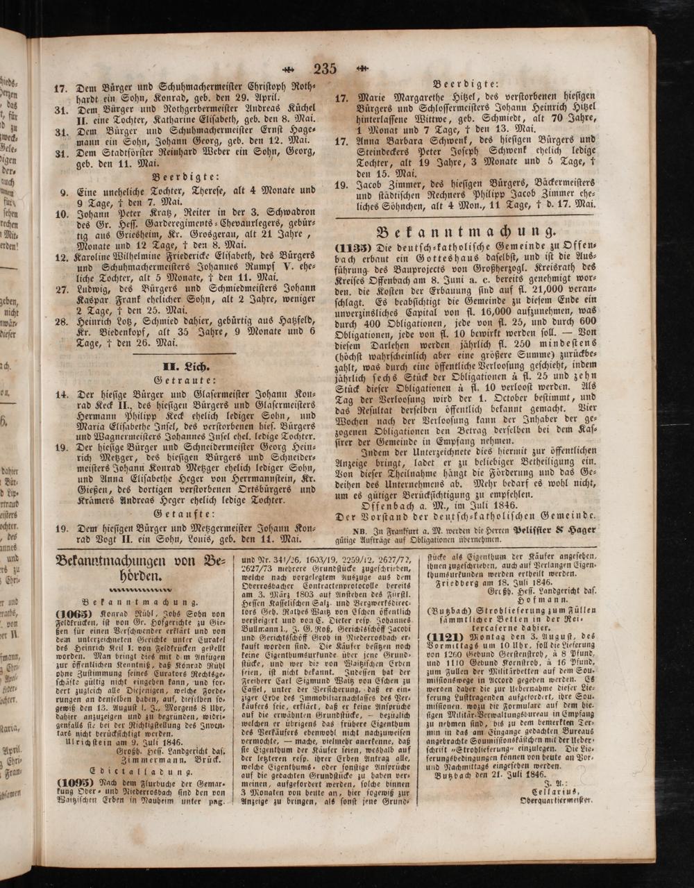 19. Dem hieſigen Burger und Metzgermeiſter Johann Kon⸗ rad Vogt II. ein Sohn, Louis, geb. den 14. Mai.