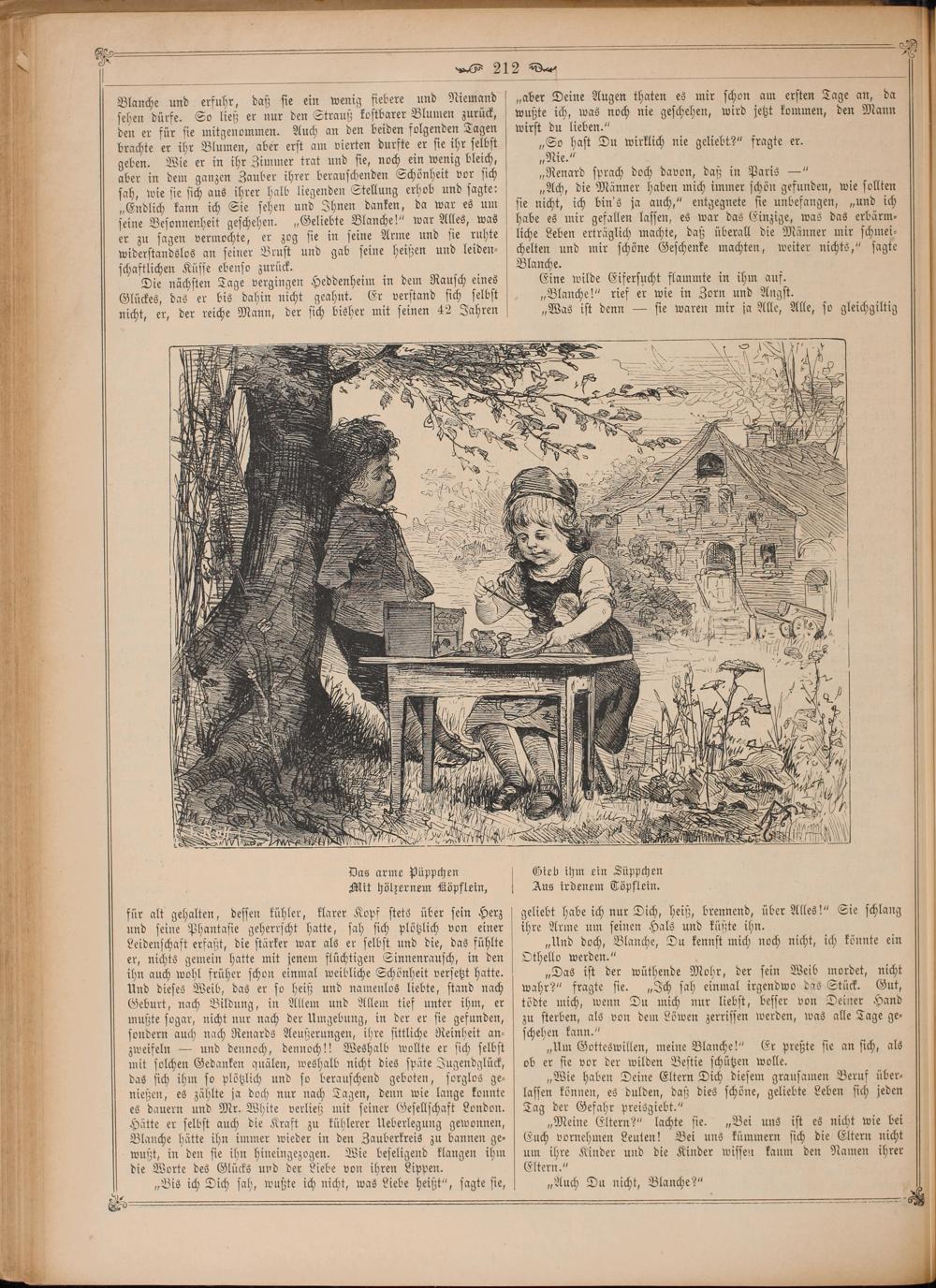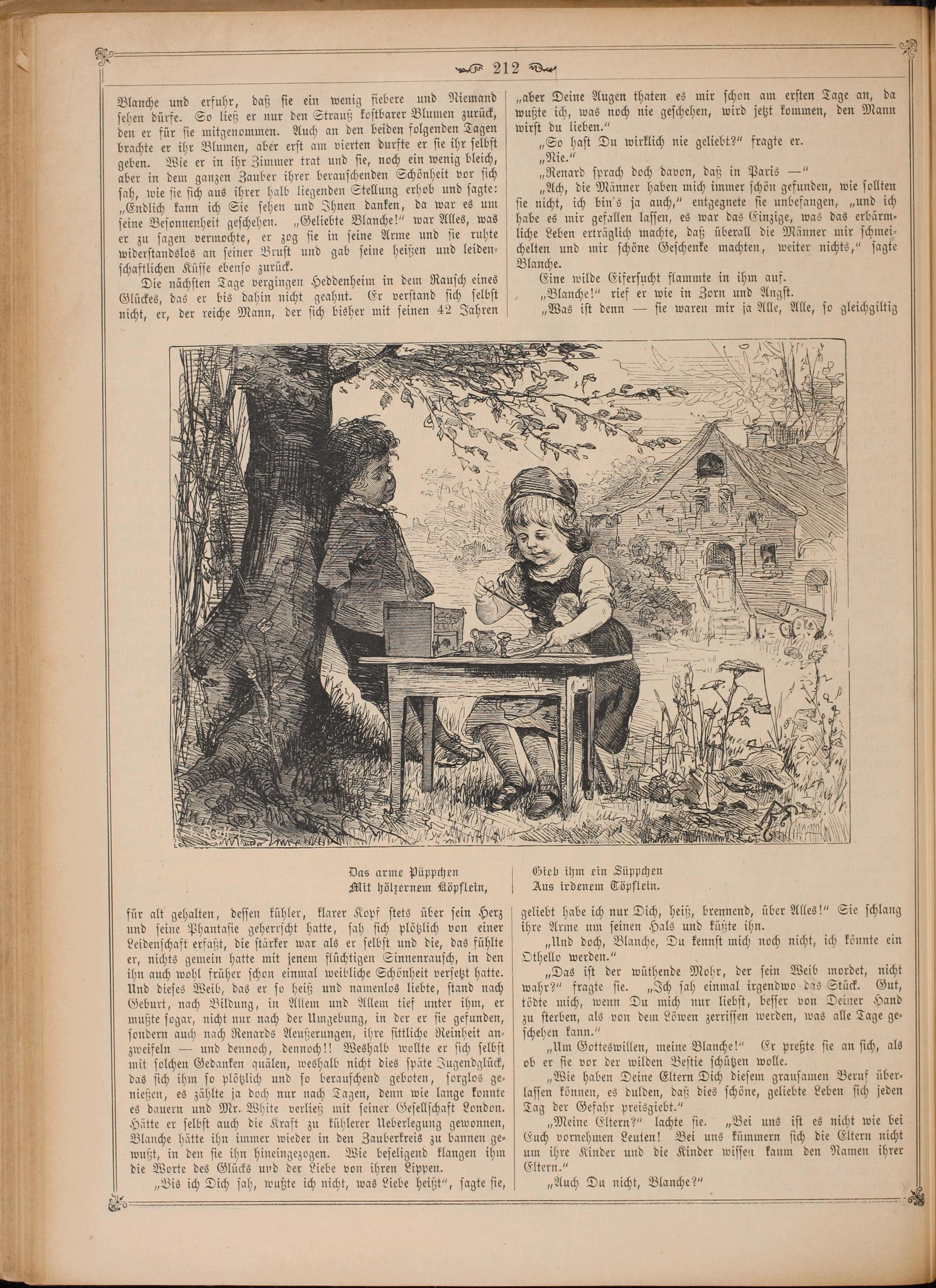 Blanche und erfuhr, daß sie ein wenig fiebere und Niemand sehen dürfe. So ließ er nur den Strauß kostbarer Blumen zurück, den er für sie mitgenommen. Auch an den beiden folgenden Tagen brachte er ihr Blumen, aber erst am vierten durfte er sie ihr selbst geben. Wie er in ihr Zimmer trat und sie, noch ein wenig bleich, aber in dem ganzen Zauber ihrer berauschenden Schönheit vor sich sah, wie sie sich aus ihrer halb liegenden Stellung erhob und sagte: „Endlich kann ich Sie sehen und Ihnen danken, da war es um seine Besonnenheit geschehen.„Geliebte Blanche!“ war Alles, was er zu sagen vermochte, er zog sie in seine Arme und sie ruhte widerstandslos an seiner Brust und gab seine heißen und leiden— schaftlichen Küsse ebenso zurück. 5