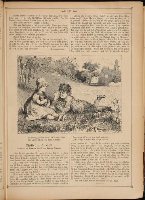 „Warum davon reden,“ fuhr sie, sich an ihn schmiegend, fort, „das ist Alles garnicht schön, Du siehst, sie hat mich nicht geliebt, ich nicht sie, Du, Du bist der erste Mensch, der mich liebt, den ich liebe, darum wohl ist es so unaussprechlich schön, darum liebe ich Dich so ohn' alle Grenzen!“(Fortsetzung folgt.)