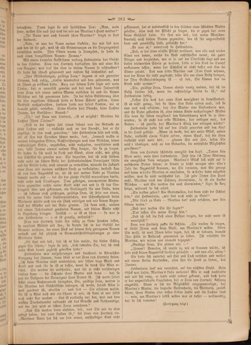 betrachtete. Dann sagte sie mit spöttischem Ton:„Nun, mein Herr, wollen Sie auch jetzt noch bei mir um Martina's Hand werben?“