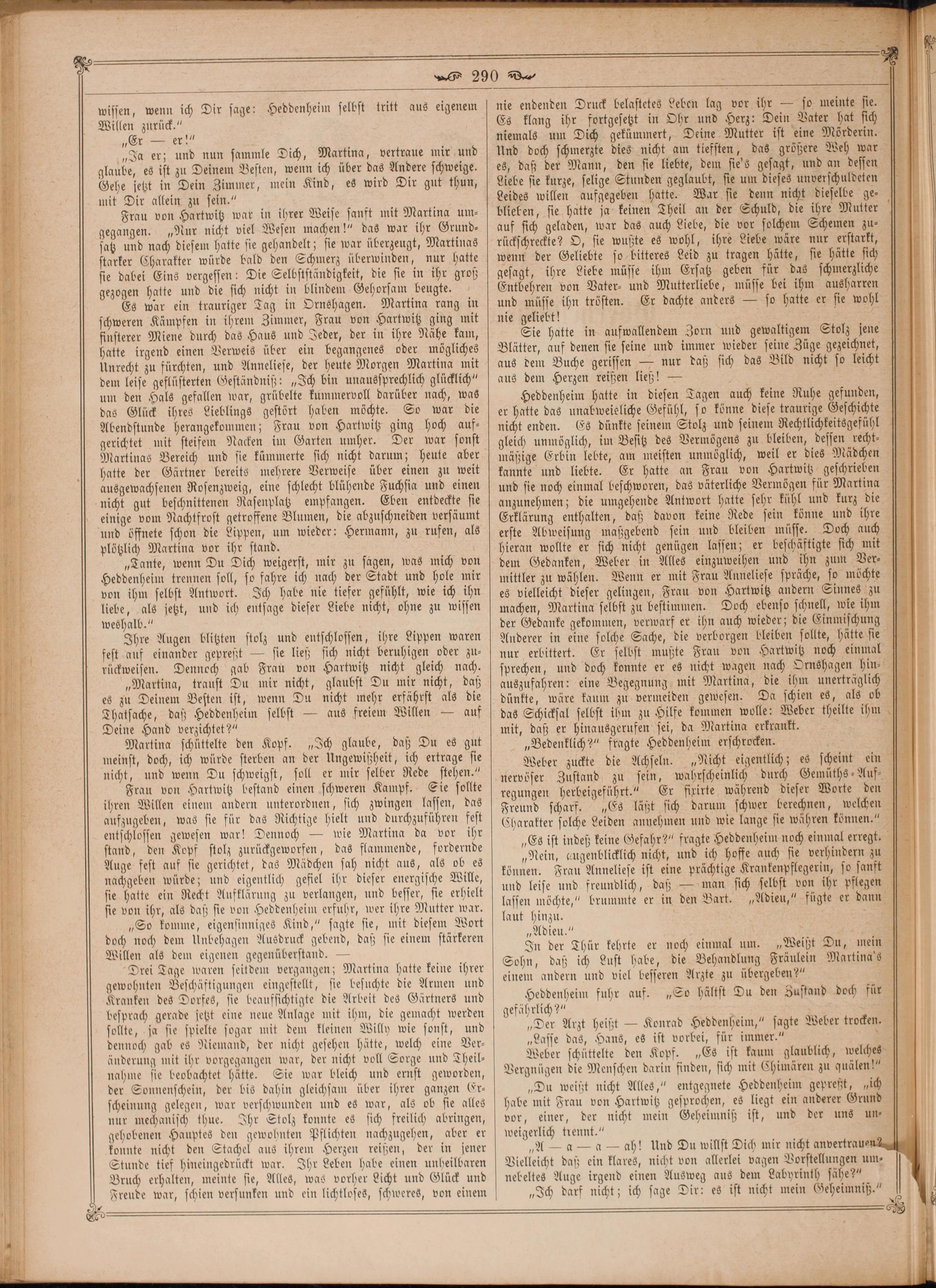 „Tante, wenn Du Dich weigerst, mir zu sagen, was mich von Heddenheim trennen soll, so fahre ich nach der Stadt und hole mir von ihm selbst Antwort. Ich habe nie tiefer gefühlt, wie ich ihn liebe, als jetzt, und ich entsage dieser Liebe nicht, ohne zu wissen weshalb.“ g