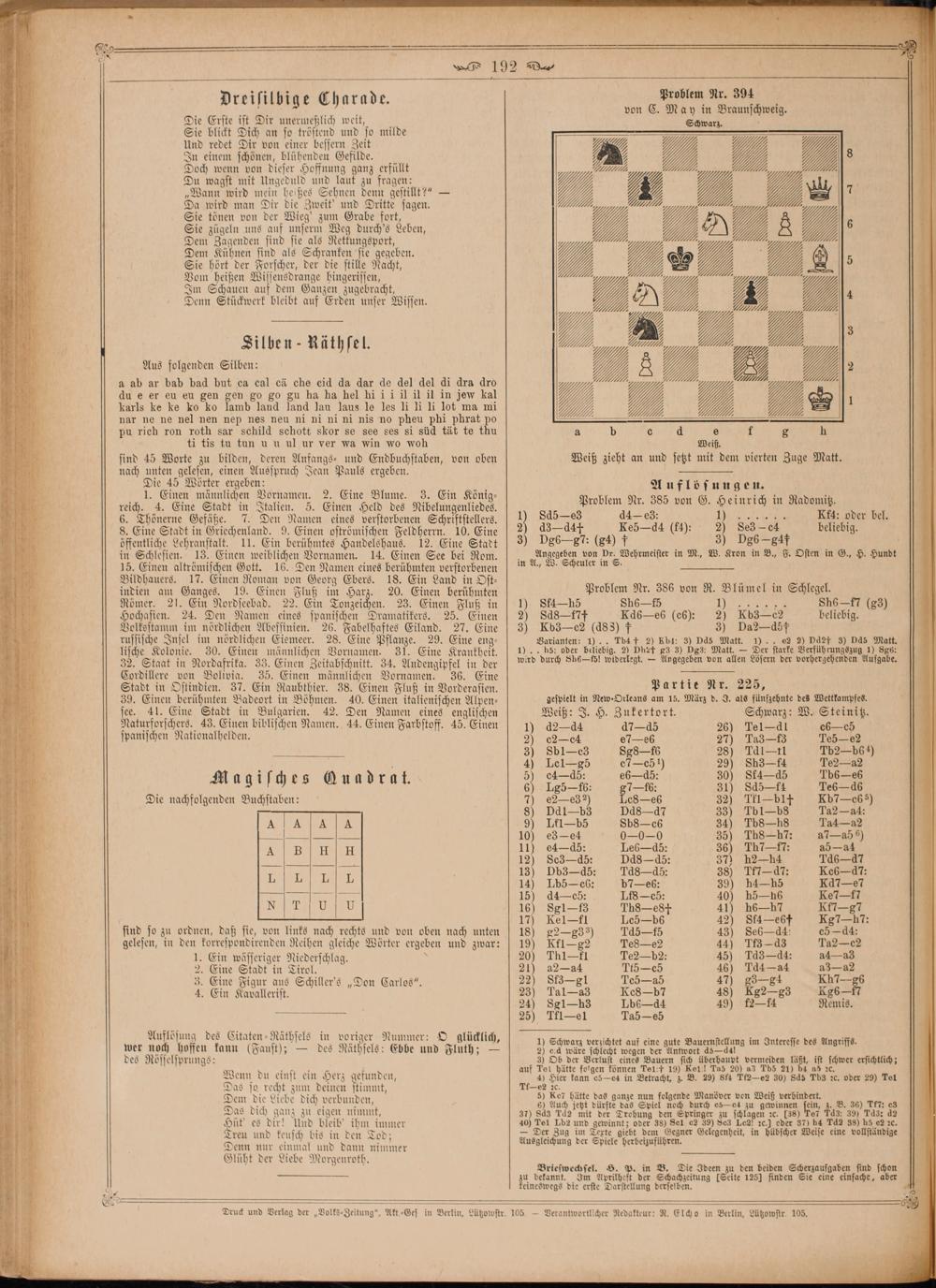 Auflösungen. Problem Nr. 385 von G. Heinrich in Radomitz.