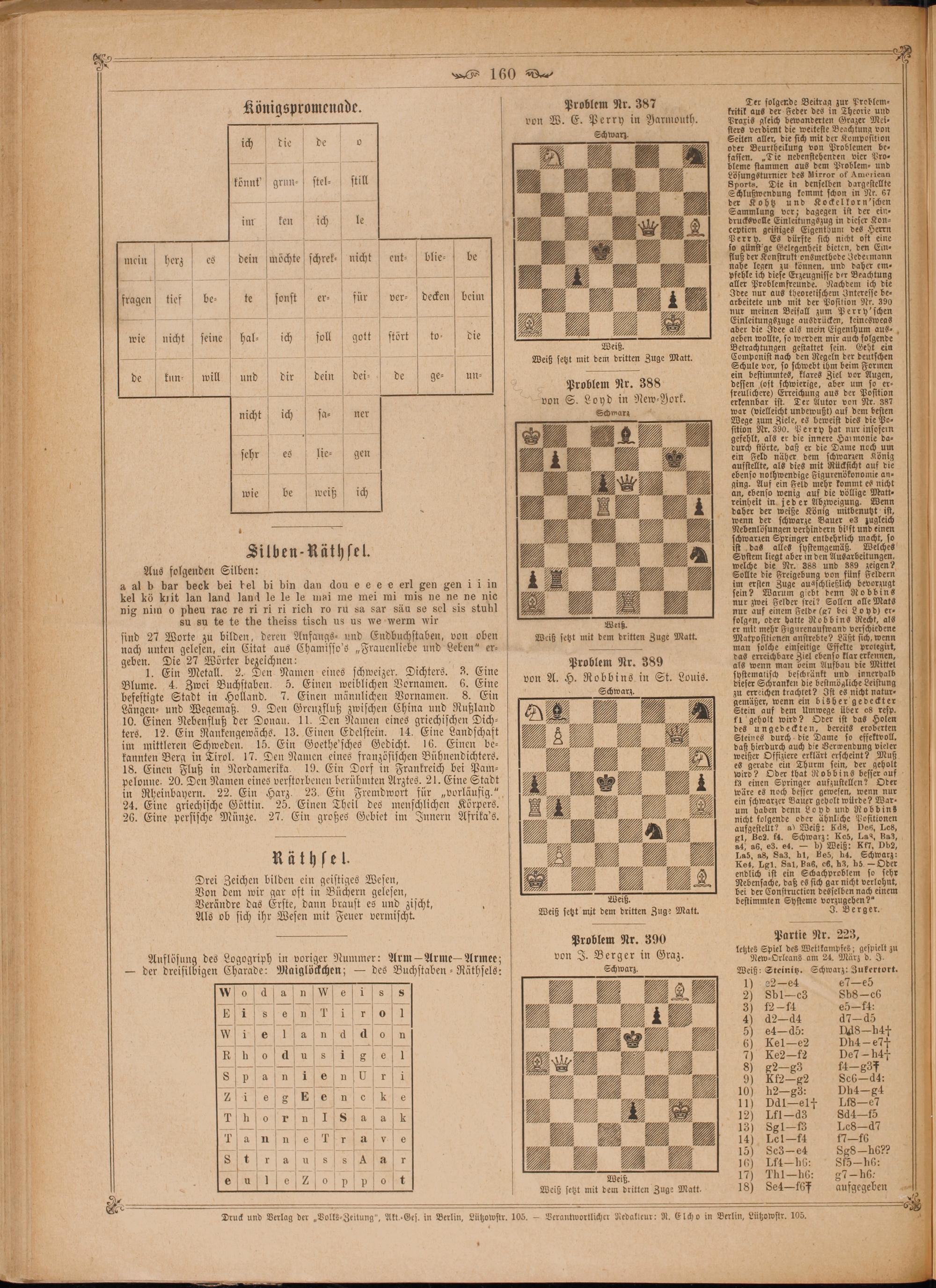 Problem Nr. 388 von S. Loyd in New⸗ Vork.