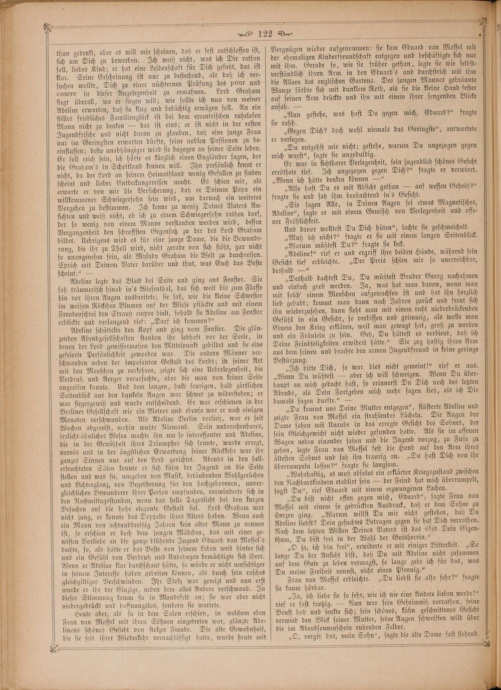 „Ich bitte Dich, so war dies nicht gemeint!“ rief er aus. „Wenn Du wüßtest— aber ich will schweigen. Wenn Du t über— haupt an mich gedacht hast, so erinnerst Du Dich noch des letzten Abends, als Dein Fortgehen mich mehr sagen ließ, als ich Dir damals sagen durfte.“—