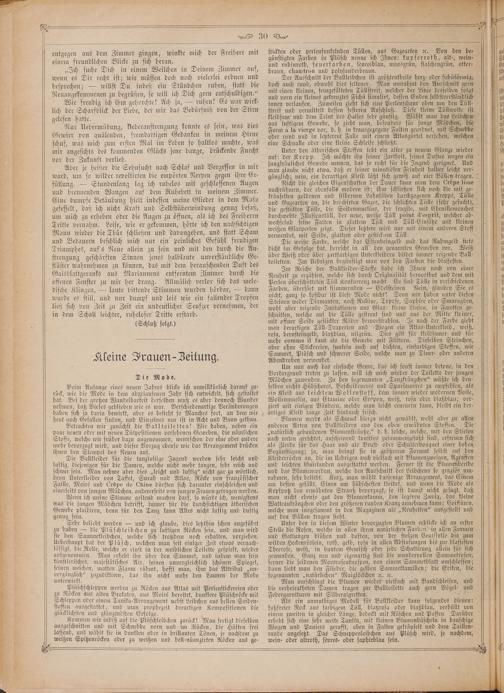 Beim Anfange eines neuen Jahres blicke ich unwillkürlich darauf zu⸗ rück, wie die Mode in dem abgelaufenen Jahr sich entwickelt, sich gestaltet hat. Bei der großen Wandelbarkeit derselben muß es aber dennoch Wunder nehmen, daß Vieles geblieben wie es war. Verschiedenartige Veränderungen haben sich ja darin bewirkt, aber es besteht so Manches 12 5 an dem wir heut noch Gefallen finden, und Einzelnes nur ist in Acht und Bann gethan.