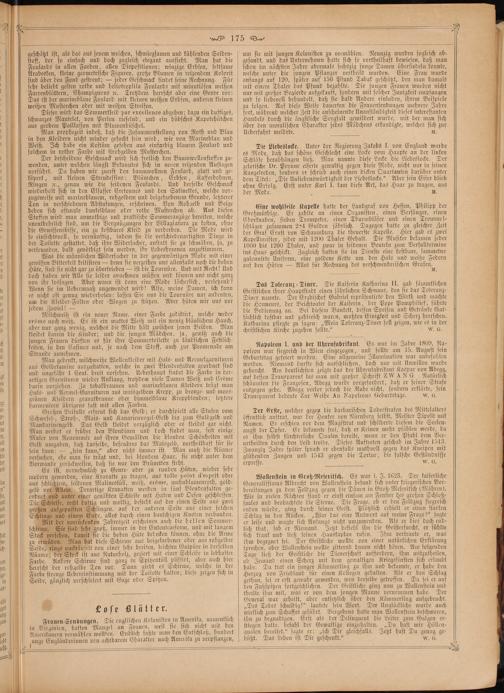 Napoleon I. und der Uhrenfabrikant. Es war im Jahre 1809, Na⸗ poleon war siegreich in Wien eingezogen, und sollte am 15. August sein Geburtstag gefeiert werden. Eine allgemeine Illumination war anbefohlen worden. Niemand durfte sich ausschließen, doch nur mit Unwillen wurde gehorcht. Am deutlichsten zeigte das der Uhrenfabrikant Kaspar von Abegg, auf dessen Transparent las man mit großer Schrift ZW AN G. Natürlich schäumten die Franzosen, Abegg wurde vorgefordert, daß er seiner Strafe entgegen gehe. Abegg verlor jedoch die Ruhe nicht, sondern erklärte, sein Transparent bedeute Zur Weihe An Napoleons Geburtstage. W. G.