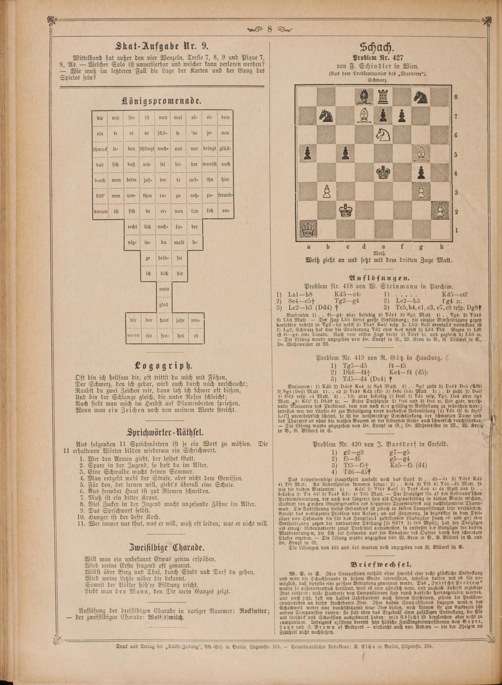 Schach. Problem Nr. 427 von F. Schindler in Wien.