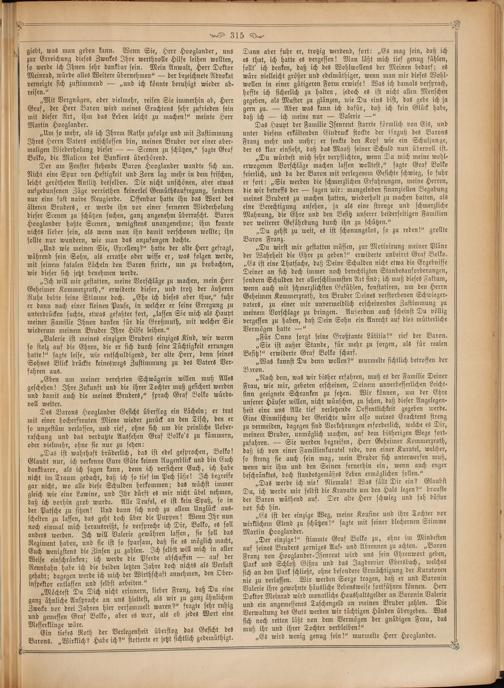 Dann aber fuhr er, trotzig werdend, fort:„Es mag sein, daß ich es that, ich hatte es vergessen! Man läßt mich tief genug fühlen, sollt' ich denken, daß ich des Wohlwollens der Meinen bedarf; es wäre vielleicht größer und edelmüthiger, wenn man mir dieses Wohl⸗ wollen in einer gütigeren Form erwiese! Was ich damals versprach, hoffte ich sicherlich zu halten, jedoch es ist nicht allen Menschen gegeben, als Muster zu glänzen, wie Du eins bist, das gebe ich ja gern zu.— Aber was kann ich dafür, daß ich kein Glück habe, daß ich— ich meine nur— Valerie—“