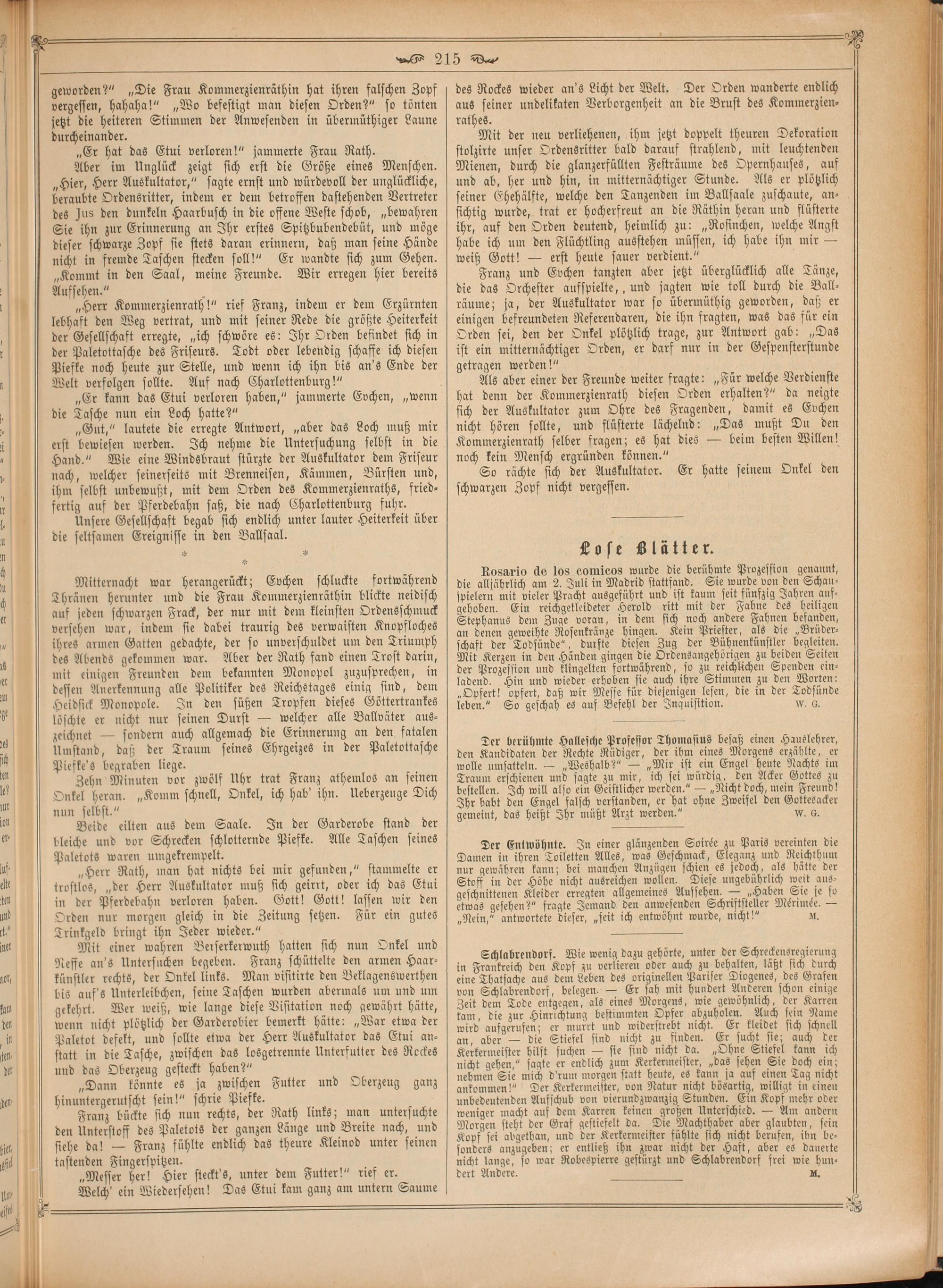 Mit der neu verliehenen, ihm jetzt doppelt theuren Dekoration stolzirte unser Ordensritter bald darauf strahlend, mit leuchtenden Mienen, durch die glanzerfüllten Festräume des Opernhauses, auf und ab, her und hin, in mitternächtiger Stunde. Als er plötzlich