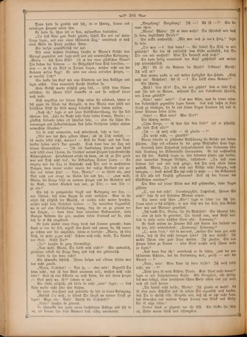 „Maria, Wahrheit!— Nur ja,— oder nein! Begreifst Du denn nicht, daß ich kein Weib umarmen will, welches mich nicht liebt? Soll ich eine Sklavin an mich ketten, die mit ihrem Herzen — Gott weiß wo, ist?“ loderte er auf.