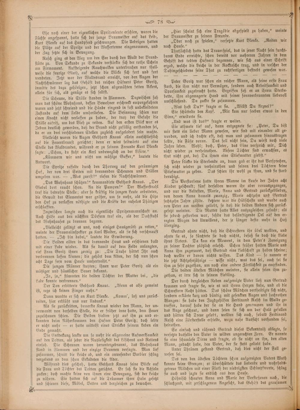 Gertrud ahnte nicht, daß die Schwestern ihr übel wollten, und ahnte sie es, so fürchtete sie doch nichts, besaß sie doch die Liebe ihres Vaters. Da kam ein Moment, in dem Peter's Zuneigung zu seiner Tochter plötzlich erlosch. Schon früher hatten Marie und Anna ihm zugeraunt, daß Gertrud eine Liebschaft zu haben scheine; doch wollte er davon nichts wissen. Das Kind— so nannte er die jetzt Achtzehnjährige— wisse nicht, was das sei, auch sei sie 1 ihm zu sehr zugethan, um noch eine andere Zärtlichkeit zu empfinden. 4