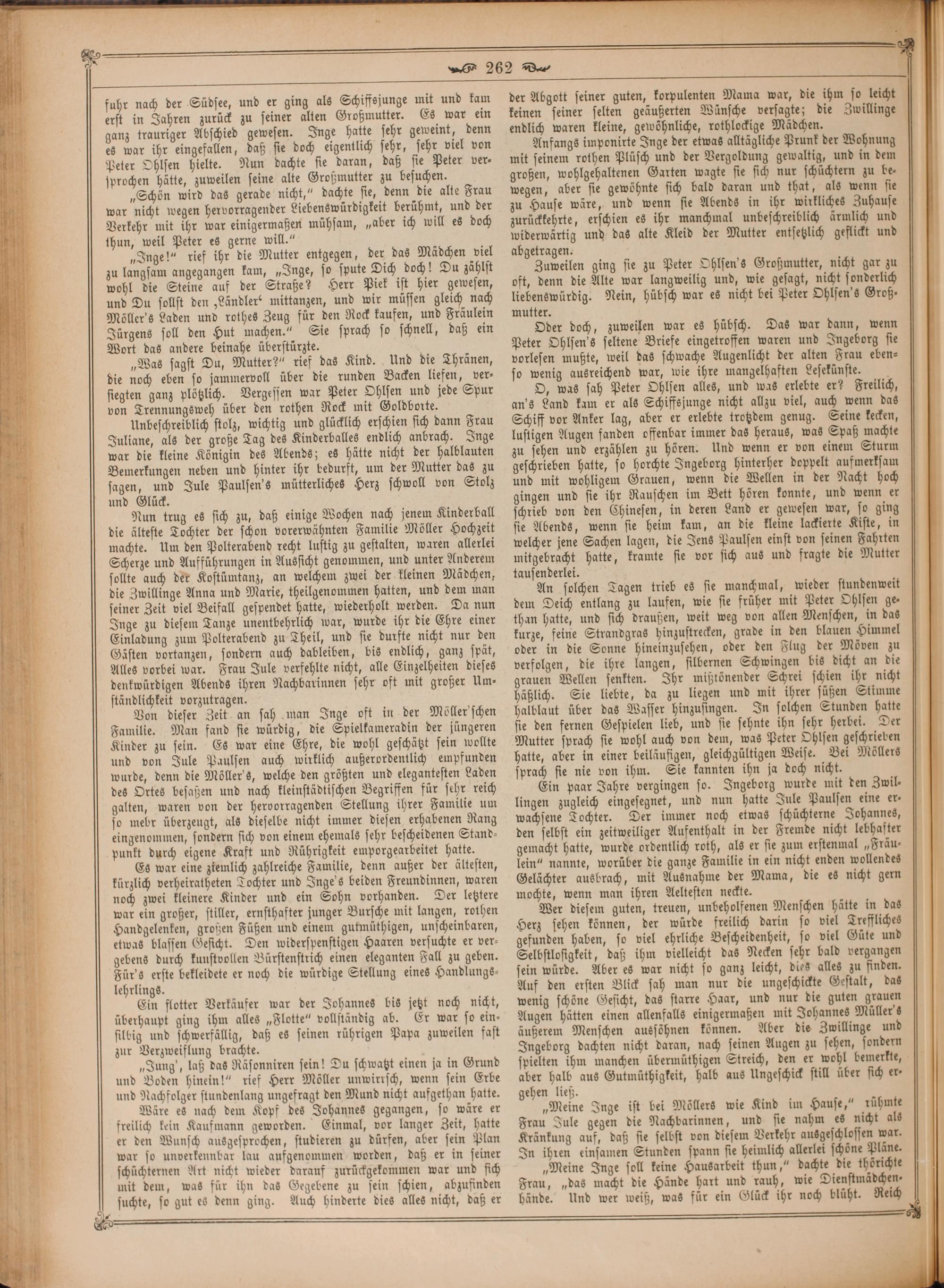 O, was sah Peter Ohlsen alles, und was erlebte er? Freilich, an's Land kam er als Schiffsjunge nicht allzu viel, auch wenn das Schiff vor Anker lag, aber er erlebte trotzdem genug. Seine kecken, lustigen Augen fanden offenbar immer das heraus, was Spaß machte zu sehen und erzählen zu hören. Und wenn er von einem Sturm geschrieben hatte, so horchte Ingeborg hinterher doppelt aufmerksam und mit wohligem Grauen, wenn die Wellen in der Nacht hoch gingen und sie ihr Rauschen im Bett hören konnte, und wenn er schrieb von den Chinesen, in deren Land er gewesen war, so ging sie Abends, wenn sie heim kam, an die kleine lackierte Kiste, in welcher jene Sachen lagen, die Jens Paulsen einst von seinen Fahrten mitgebracht hatte, kramte sie vor sich aus und fragte die Mutter tausenderlei.