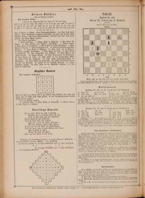 A. in Schalke. Zu den besten Leitfäden zur gründlichen Erlernung des Schachspiels ge. hören: Die Schach schule von Joh. Metger Preis Mark 1.20, gebunden, 1.60 und AB des Schachspiels von J. Mind witz(Mark 1.00, gebunden 2 Mark). Beide ind im Verlage von Veit& Co. in Leipzig erschienen. Von der Lasa's Leitfaden in demselben Verlage kostet ungebunden 5 Mark. 1