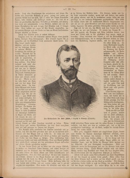 saale ihre Vorstellung beginnen würde, und bot uns Billets für die ersten Plätze an. In seiner Redseligkeit bemerkte der Wirth nicht, wie Rein bei Nennung des Dorfes zusammenzuckte, die Farbe wechselte und düsteren Blickes vor sich hinstarrte, und obgleich auch ich mir die Bewegung meines Freundes nicht recht erklä— ren konnte, glaubte ich ihn doch aus dieser plötzlichen Verstimmung am besten herausreißen zu können, wenn ich die beiden Plätze für uns annahm. Unter⸗ dessen— so hoffte ich— würden unsere Zimmer be⸗ haglich durchwärmt sein, und ein guter Thee nach der Vorstellung uns den Abend noch recht gemüth— lich gestalten.