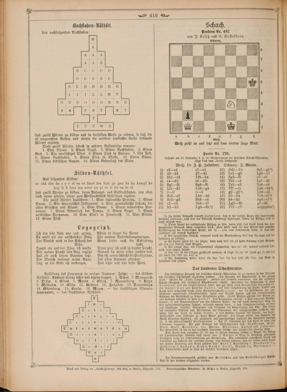 Verantwortlicher Redakteur: R. Elcho in Berlin, Lützowstr. 105.