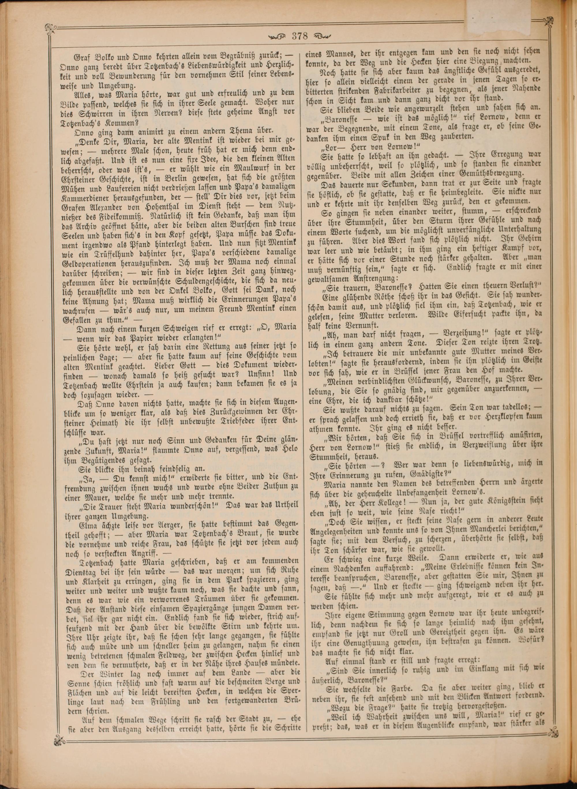 Alles, was Maria hörte, war gut und erfreulich und zu dem Bilde passend, welches sie sich in ihrer Seele gemacht. Woher nur dies Schwirren in ihren Nerven? diese stete geheime Angst vor Totzenbach's Kommen?