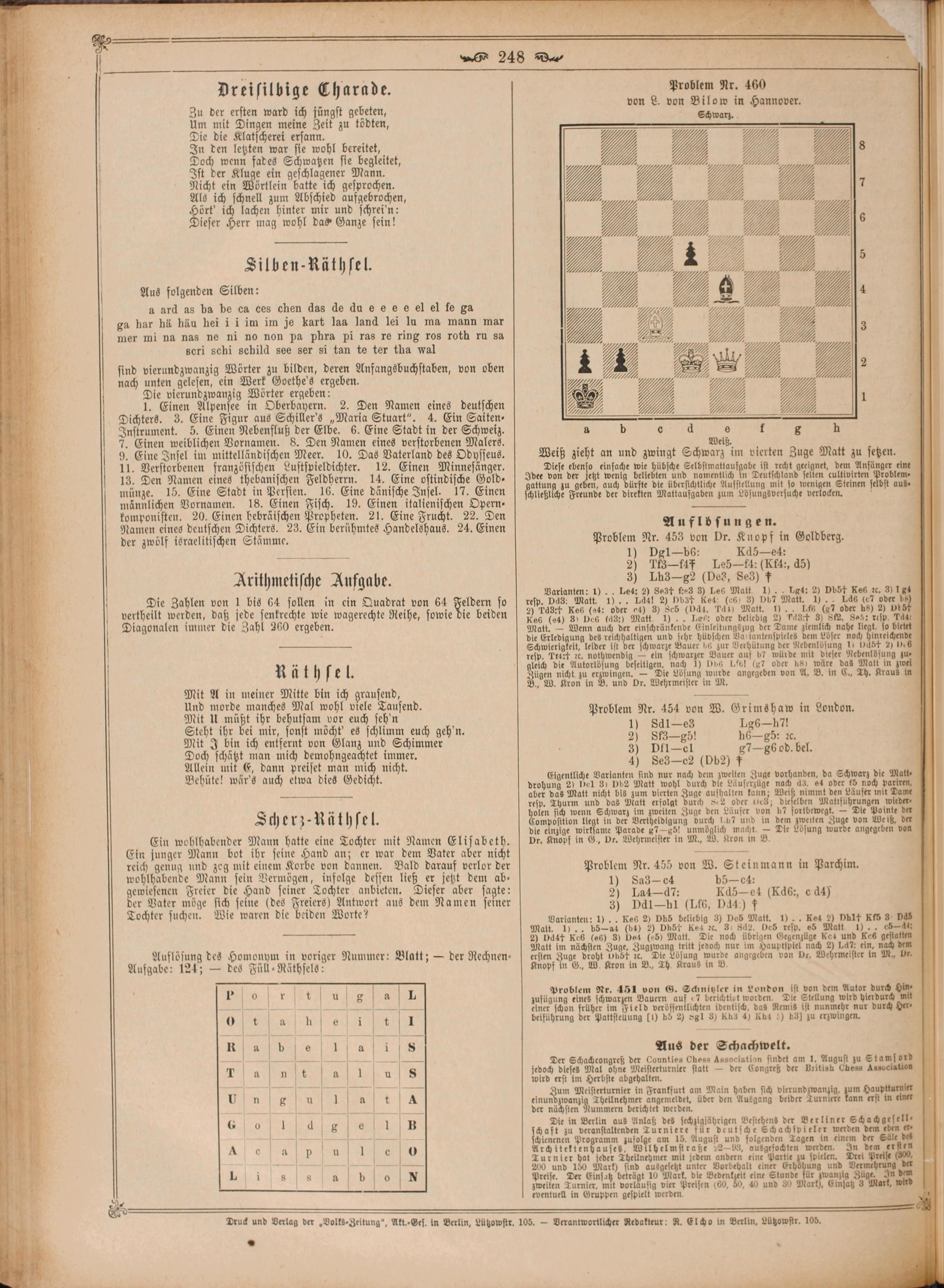 Problem Nr. 460 von L. von Bilow in Hannover.