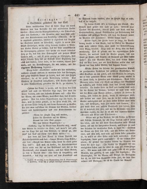 In dieſem Stücke iſt's in Leiningen wie überall. Die Armuth wird größer von Jahr zu Jahr. Ueberall neue Quellen des Erwerbes, überall Hülfe und Rath von den Einſichtsvolleren, überall Geſellſchaften zur Beförderung des leiblichen und geiſtigen Wohls, und doch die Armuth immer im Wachſen und Zunehmen! Woher kommt das?