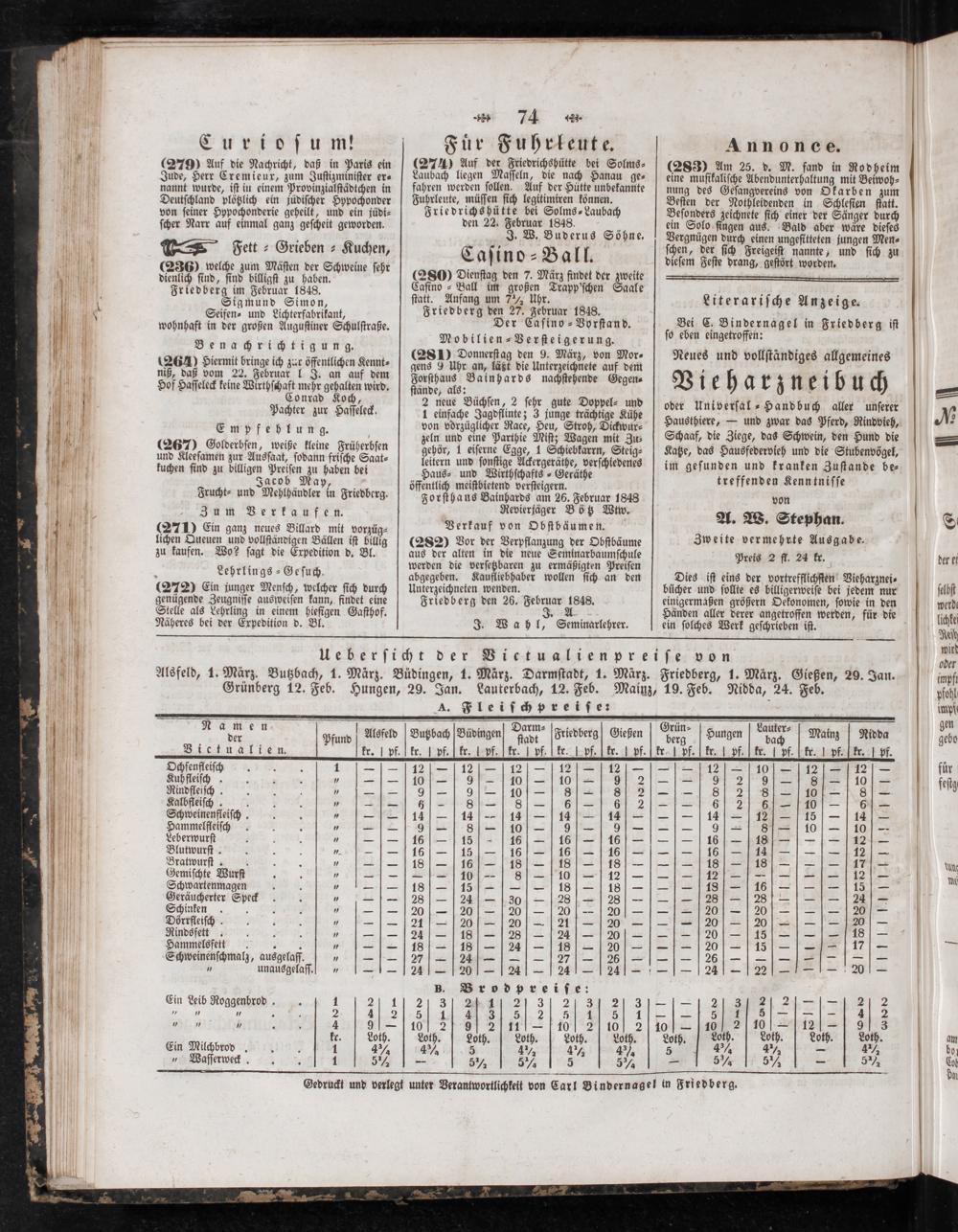Gedruckt und verlegt unter Verantwortlichkeit von Carl Bindernagel in Friedberg.