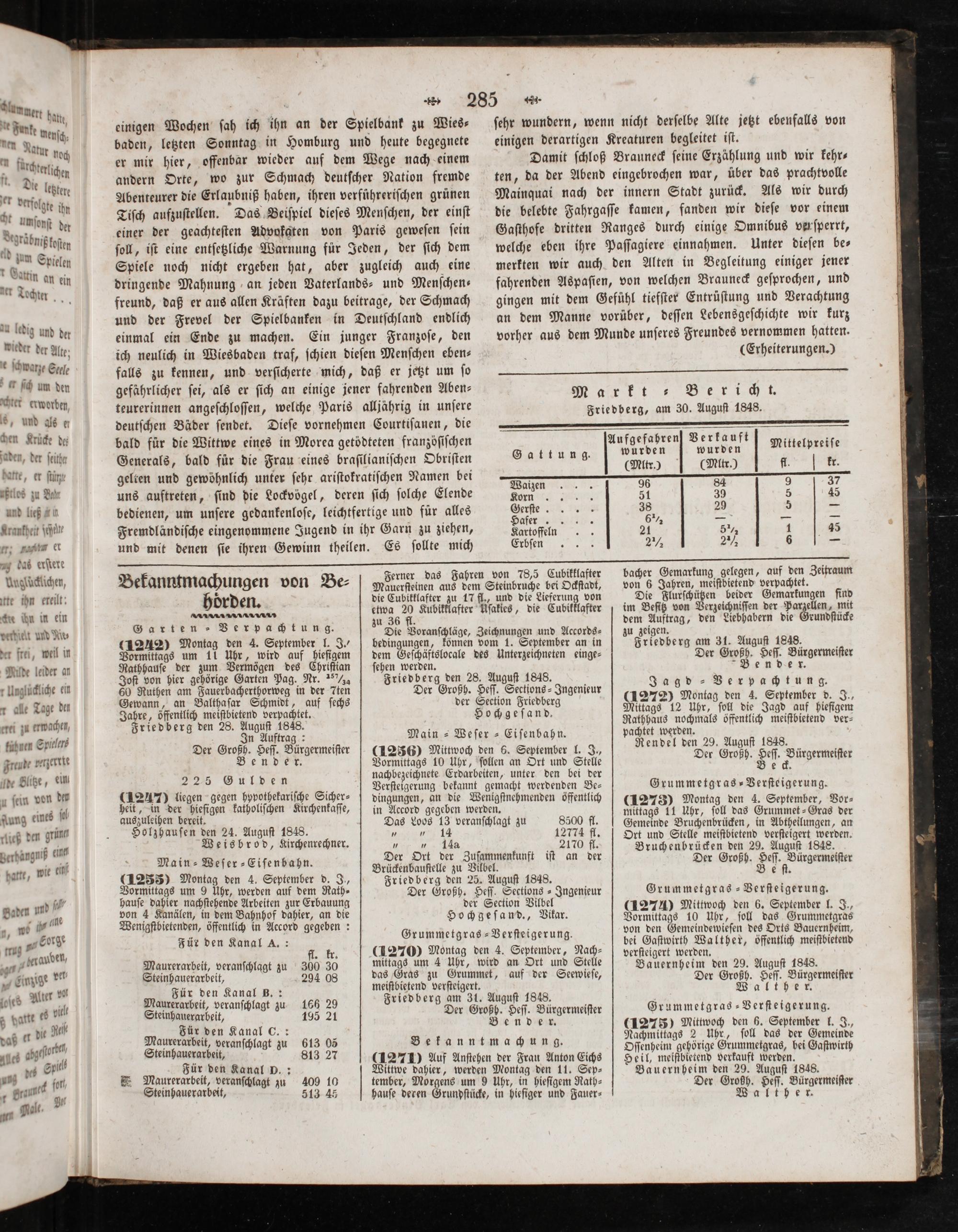 Der Ort der Zuſammenkunft iſt an der Brückenbauſtelle zu Vilbel. Friedberg den 25. Auguſt 1848. Der Großh. Heſſ. Secetions-Ingenieur der Section Vilbel Hochgeſand., Vikar.