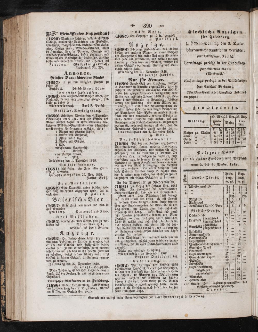 Friedberg den 1. Dezember 1848.
