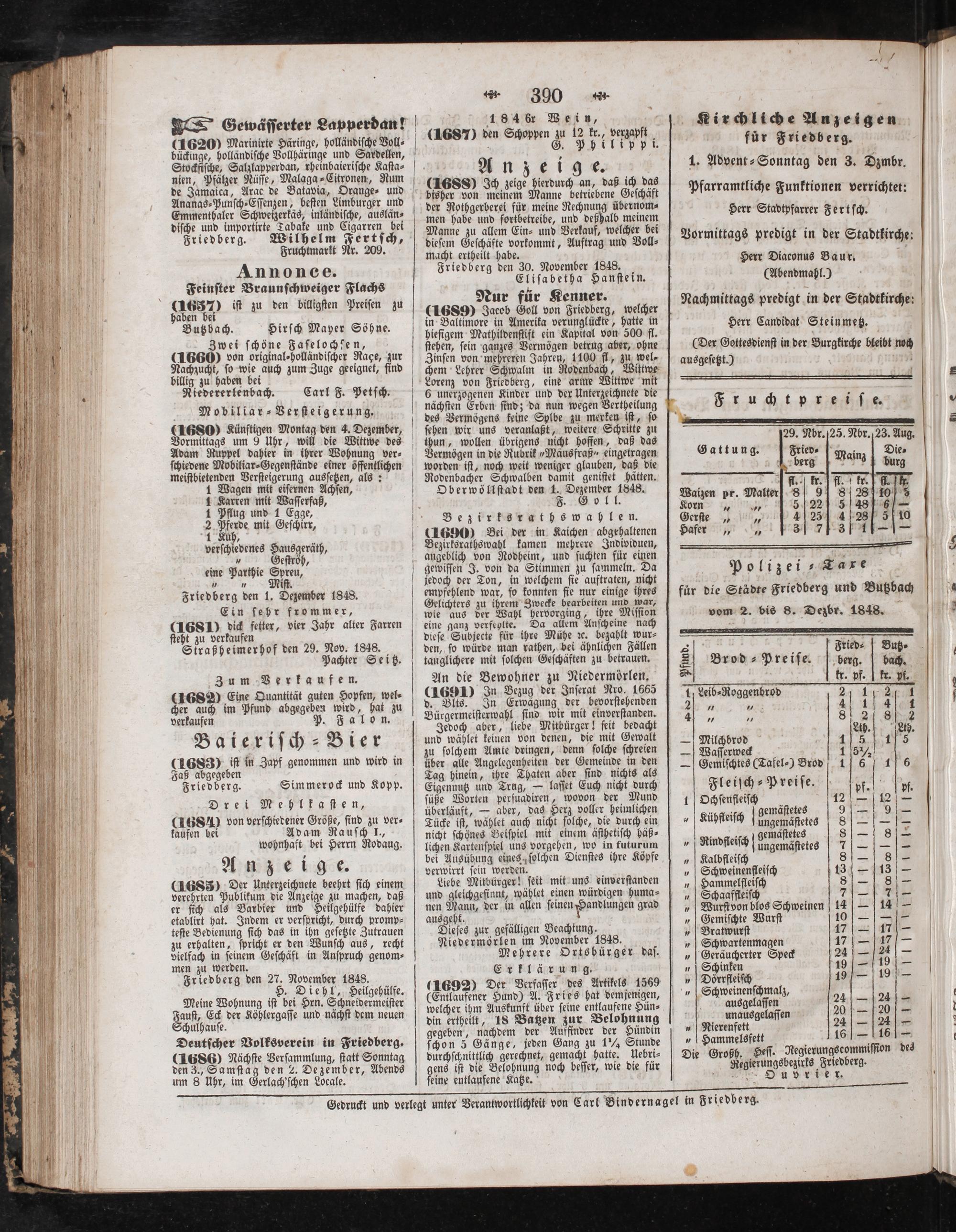 Gedruckt und verlegt unter Verantwortlichkeit von Carl Bindernagel in Friedberg.