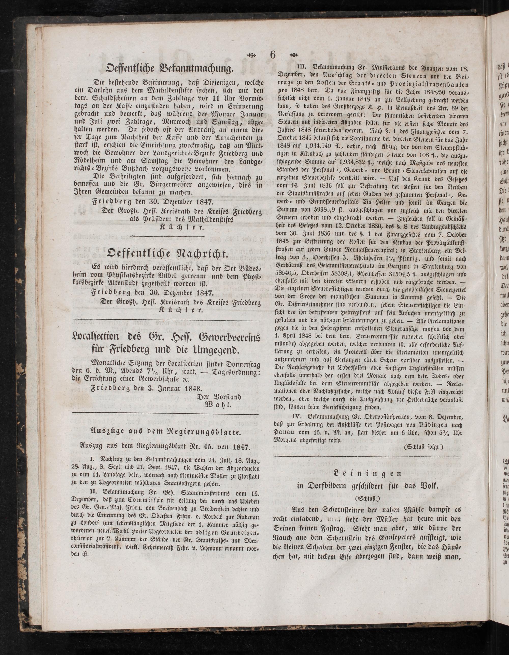 Friedberg den 30. Dezember 1847. Der Großh. Heſſ. Kreisrath des Kreiſes Friedberg Kü ch leer.