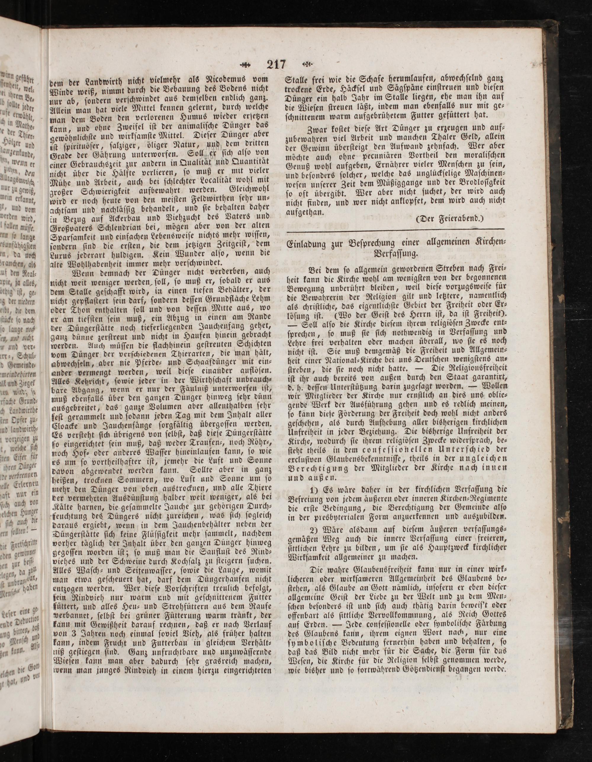 1) Es wäre daher in der kirchlichen Verfaſſung die Befreiung von jedem äußeren oder inneren Kirchen-Regimente die erſte Bedingung, die Berechtigung der Gemeinde alſo in der presbyterialen Form anzuerkennen und auszubilden.