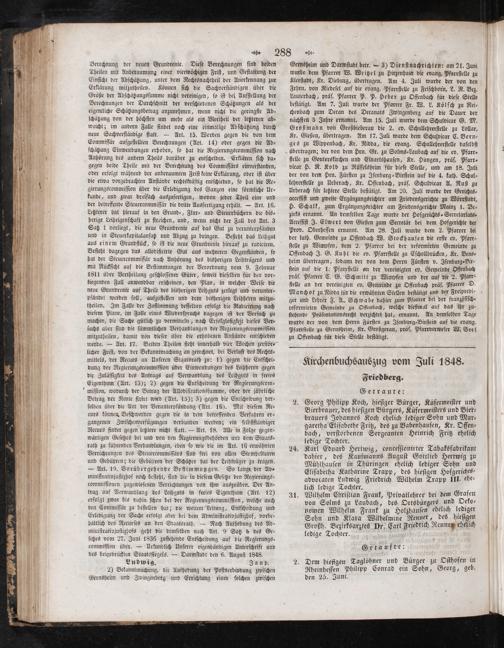Kirchenbuchsauszug vom Juli 1848. Friedberg.