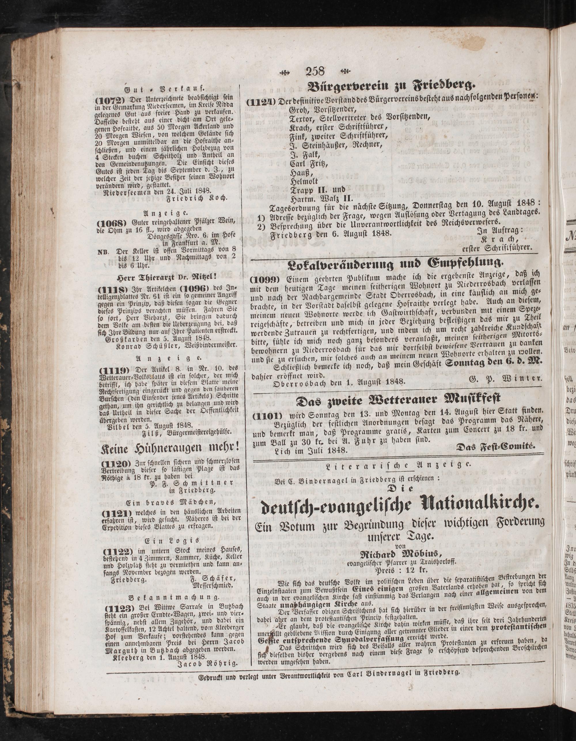 Gedruckt und verlegt unter Verantwortlichkeit von Car! Bindernagel in Friedberg.