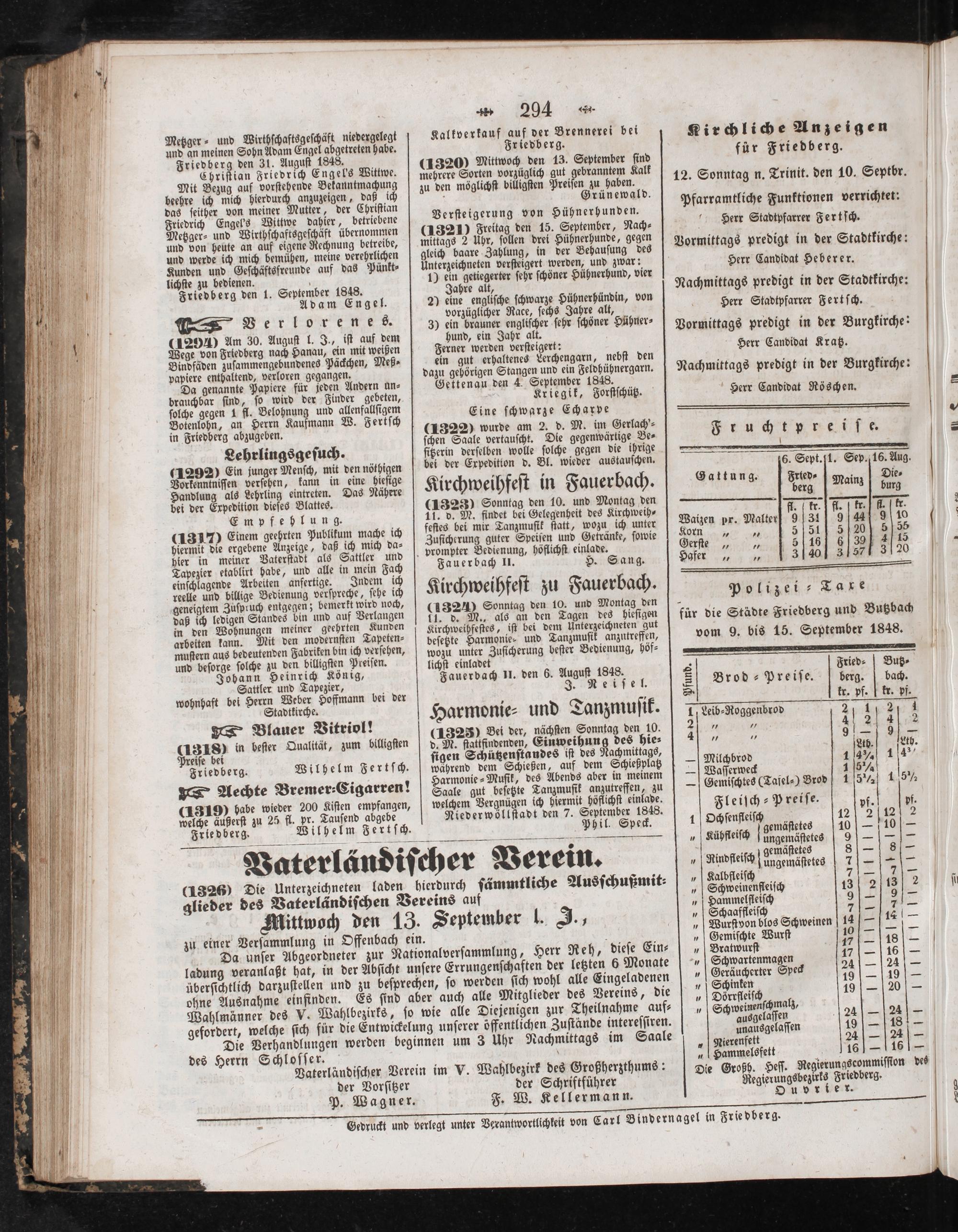lichſte zu bedienen. 8 Friedberg den 1. September 1848. Adam Engel.