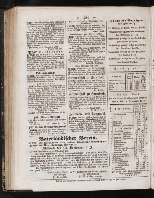 für die Städte Friedberg und Butzbach vom 9. bis 15. September 1848.