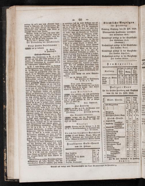 für die Städte Friedberg und Butzbach vom 19. bis 25. Febr. 1848.