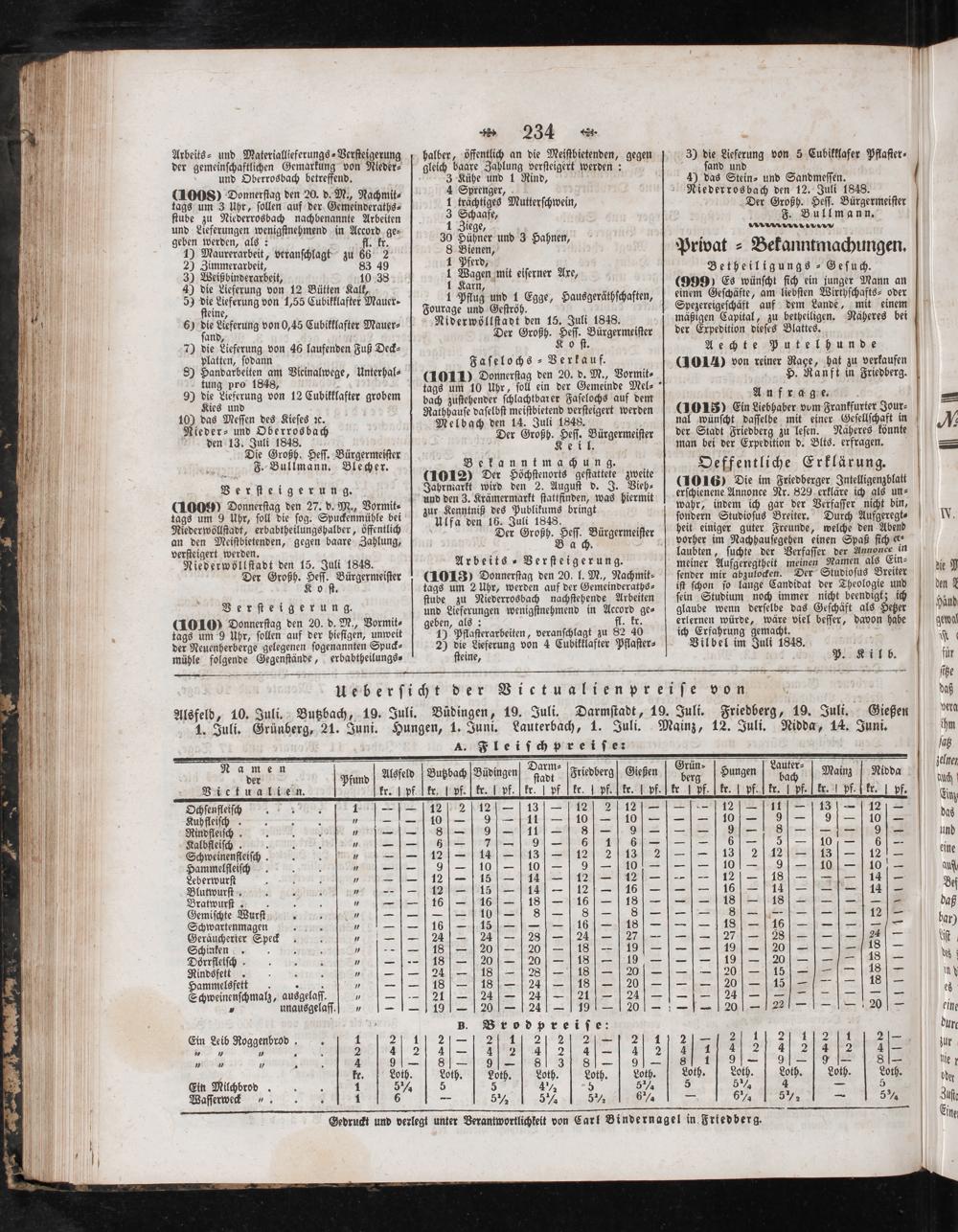 mühle folgende Gegenſtände, erbabtheilungs⸗ ſteine, Kilb. Ueberſicht der Victualienpreiſe von Alsfeld, 10. Juli. Butzbach, 19. Juli. Büdingen, 19. Juli. Darmſtadt, 19. Juli. Friedberg, 19. Juli. Gießen