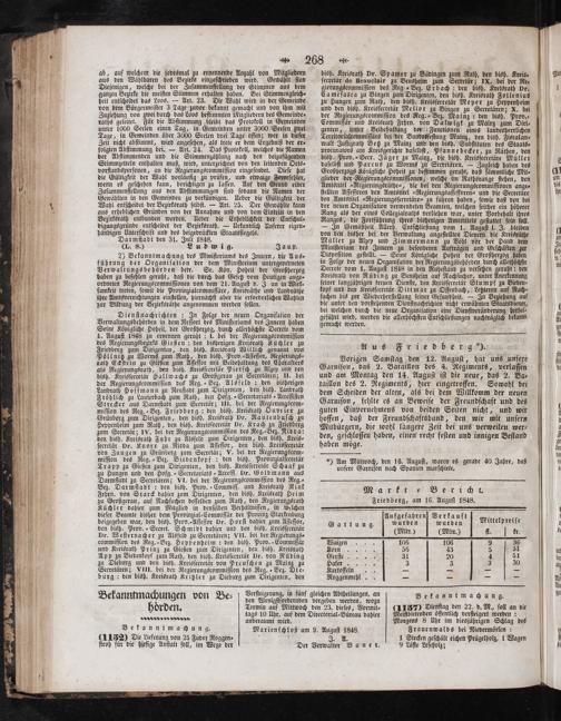 Markt Bericht. Friedberg, am 16. Auguſt 1848. Aufgefahren Verkauft. Gattung. wurden wurden[ Mittelpreiſe (Mltr.)(Mltr.) f ke. eee 106 106 9 36 F 56 43 5 31 Gerſte 31 20 4 51 e ee 3 8 3 30 Kartoffeln———— Roggenmehl————