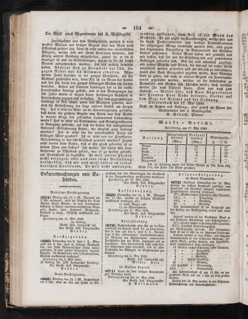 Markt ⸗ Bericht. Friedberg, am 17. Mai 1848.