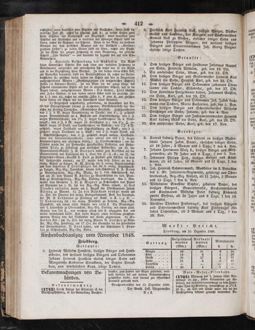 Kirchenbuchsauszug vom November 1848. Friedberg.