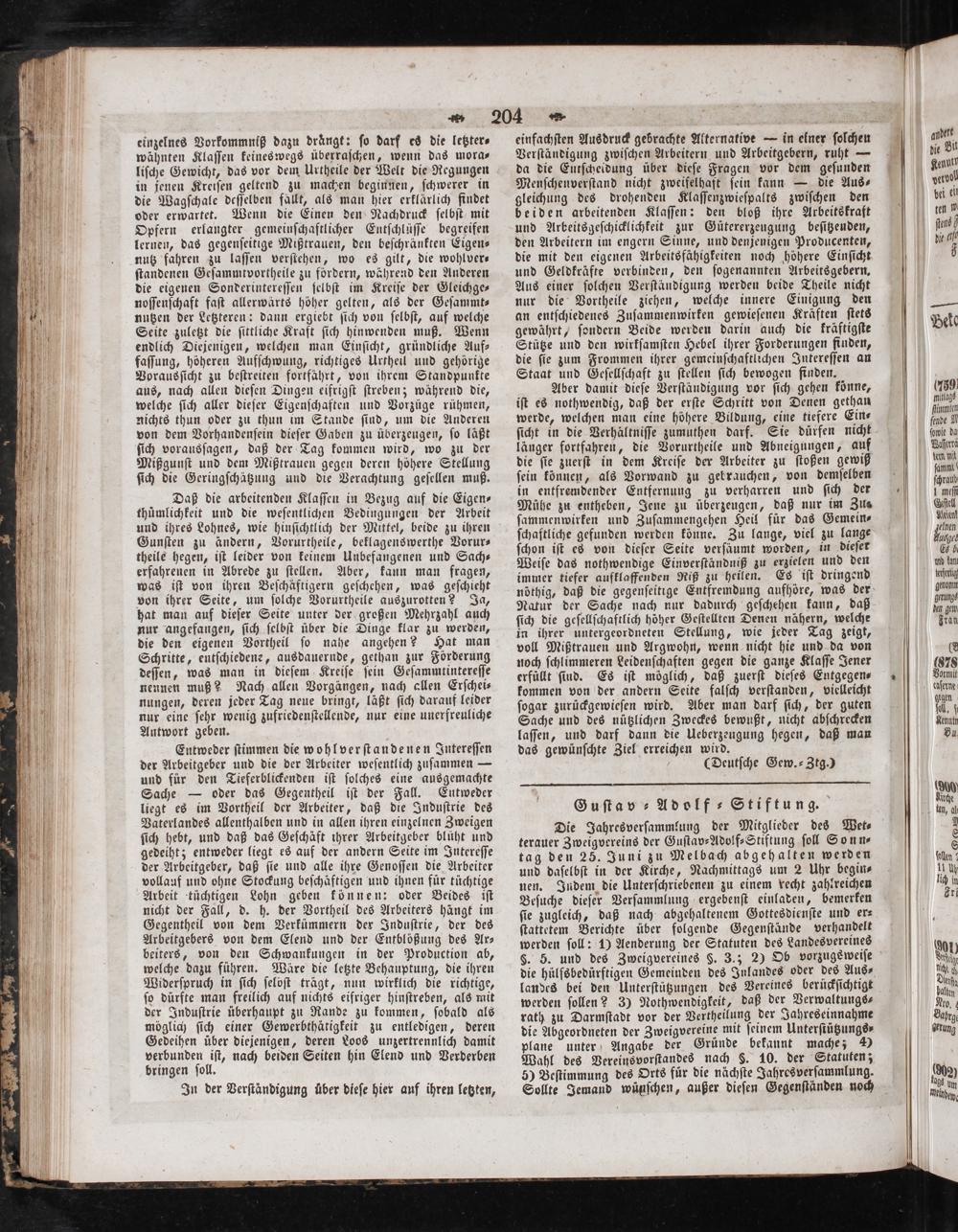 Eutweder ſtimmen die wohl verſtandenen Intereſſen der Arbeitgeber und die der Arbeiter weſentlich zuſammen— und für den Tieferblickenden iſt ſolches eine ausgemachte Sache— oder das Gegentheil iſt der Fall. Eutweder liegt es im Vortheil der Arbeiter, daß die Induſtrie des Vaterlandes allenthalben und in allen ihren einzelnen Zweigen ſich hebt, und daß das Geſchäft ihrer Arbeitgeber blüht und gedeiht; entweder liegt es auf der andern Seite im Intereſſe der Arbeitgeber, daß ſie und alle ihre Genoſſen die Arbeiter vollauf und ohne Stockung beſchaͤftigen und ihnen fuͤr tüchtige Arbeit tüchtigen Lohn geben können: oder Beides iſt nicht der Fall, d. h. der Vortheil des Arbeiters hängt im Gegentheil von dem Verkümmern der Induſtrie, der des Arbeitgebers von dem Elend und der Entblößung des Ar— beiters, von den Schwankungen in der Production ab, welche dazu führen. Wäre die letzte Behauptung, die ihren Widerſpruch in ſich ſeloſt trägt, nun wirklich die richtige, ſo dürfte man freilich auf nichts eifriger hinſtreben, als mit der Induſtrie überhaupt zu Rande zu kommen, ſobald als möglich ſich einer Gewerbthätigkeit zu entledigen, deren Gedeihen über diejenigen, deren Loos unzertrennlich damit verbunden iſt, nach beiden Seiten hin Elend und Verderben bringen ſoll.